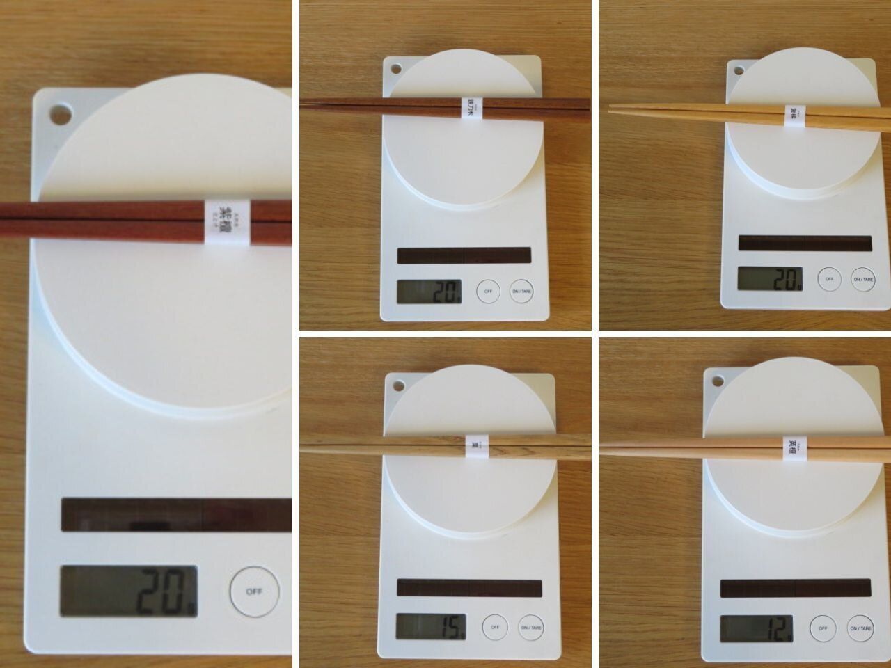 予想どおり、材質によって重さが違いました。