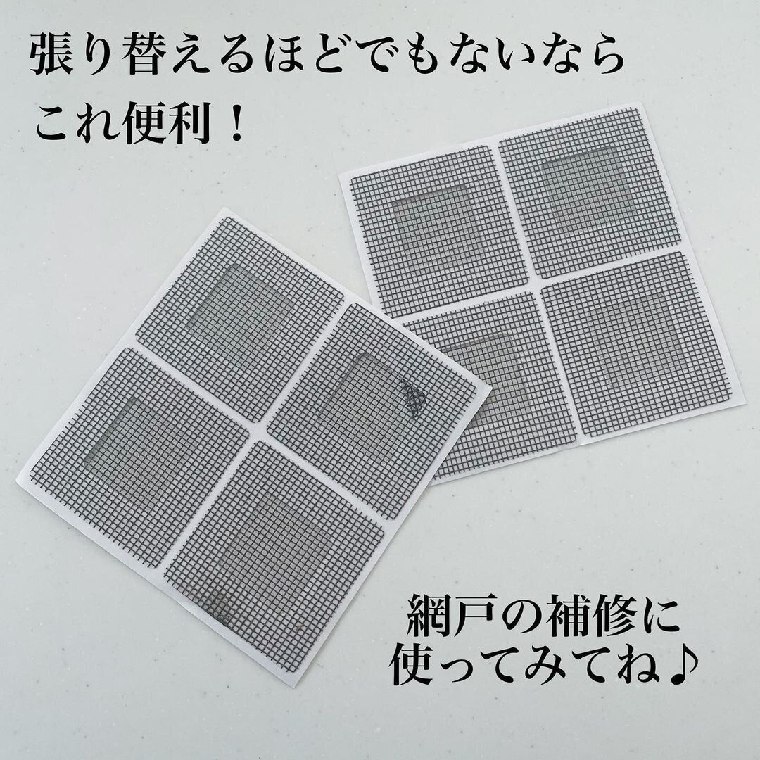 使い方は簡単で、網戸の破れた部分をはさみなどで整えてからシールを貼るだけ。Instagrammerは強度を出すため、裏側からも貼っているのだそう。小さな網戸の穴ならこれで修理できるため、とても便利です。もし網戸の穴が見つかったら、このアイテムを探してみてくださいね。