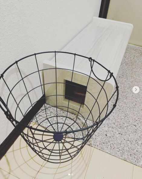 ダイソーのワイヤーバスケットを玄関先に置き、コート入れにしている例です。ハンガーにかけるのではなく、入れるだけ、というのがとても便利そうですね。ワイヤーなのでスッキリ見えるのも◎。こちらは、330円の商品です。