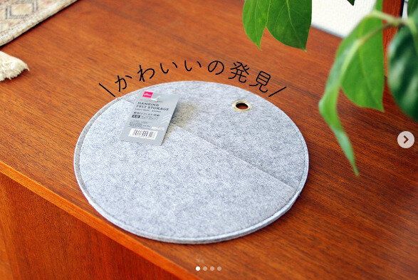 ダイソーの壁掛けフェルト収納は、ときどきしかみないお知らせやはがきなどを収納するのに便利です。シンプルなデザインで、インテリアの邪魔にならないのがよいですね!軽いためプッシュピン1本で固定できるので、場所を選ばず飾れます。
