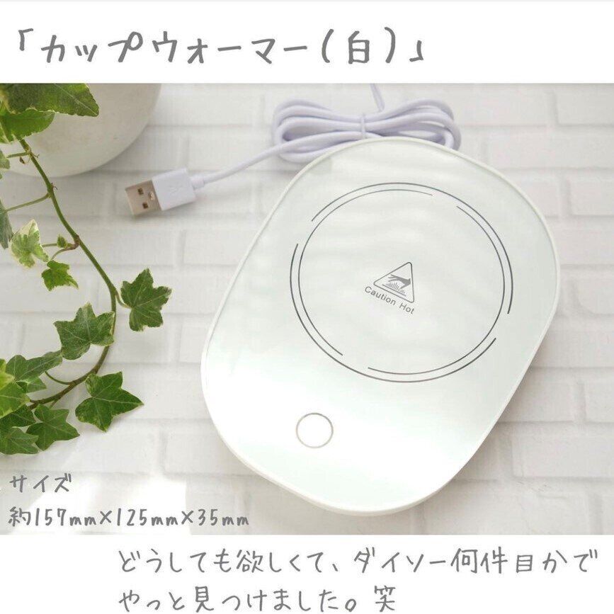 こちらは寒い時期のデスクワークには必須のアイテム、「カップウォーマー(白)」で、550円。大きな円の中にマグカップを置いておけば、いつでも温かいドリンクをいただけます。