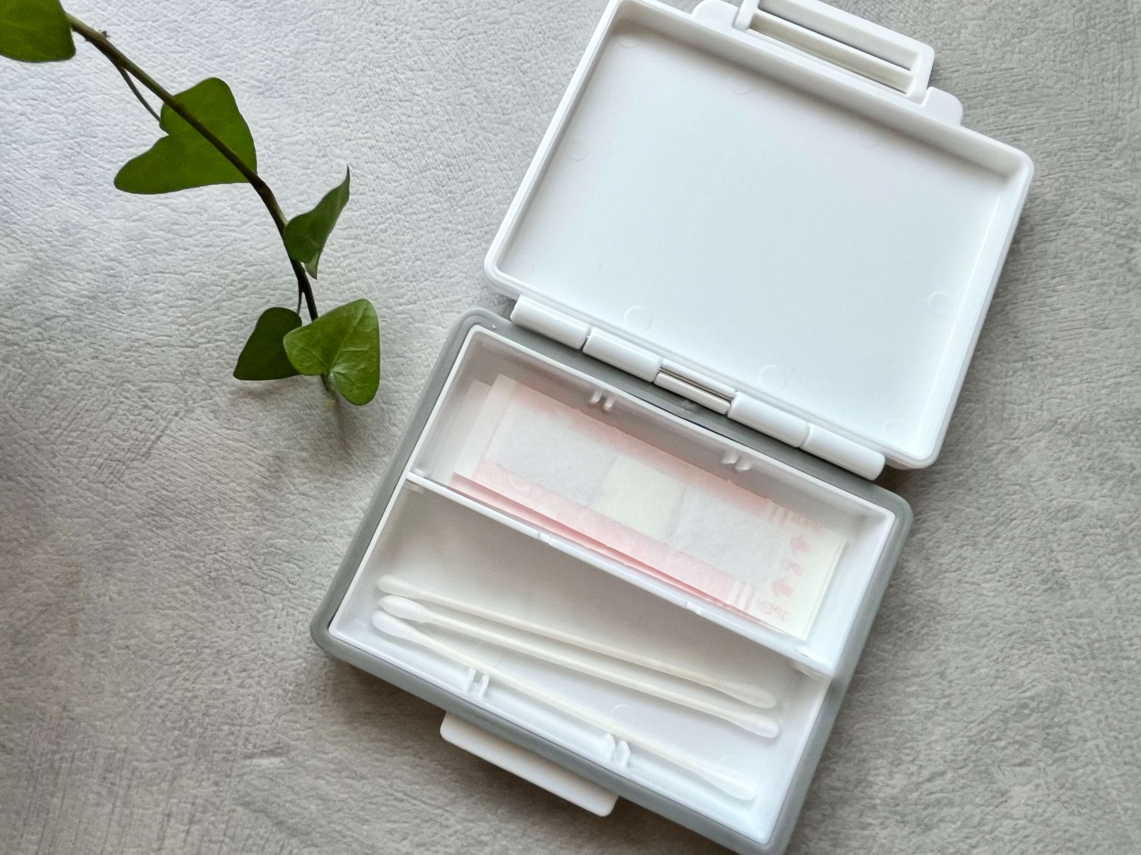 お薬ケースという商品名ですが、もちろんお薬以外の収納にも使えます。例えば、綿棒や絆創膏!チャック付きの袋とかに入れると折れてしまうことがありますが、コレなら折れにくいし、サイズもピッタリです。