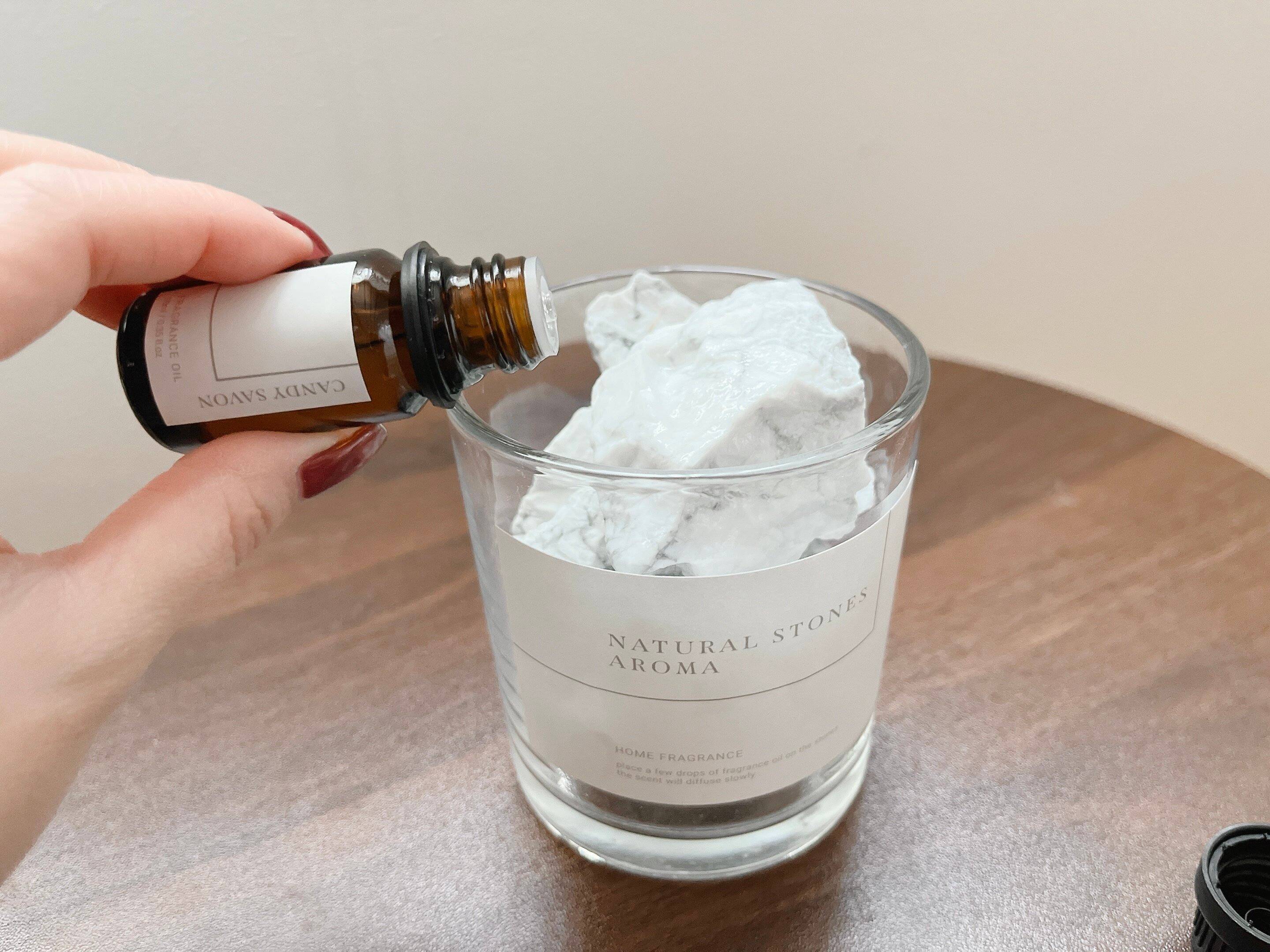 天然石に数滴アロマを垂らすと、キャンディサボンの石鹸の様な爽やかでフレッシュな香りが広がってとても癒されます!!女子に人気のSHIROの香水「SAVON」の香りと似ていると話題になっています。