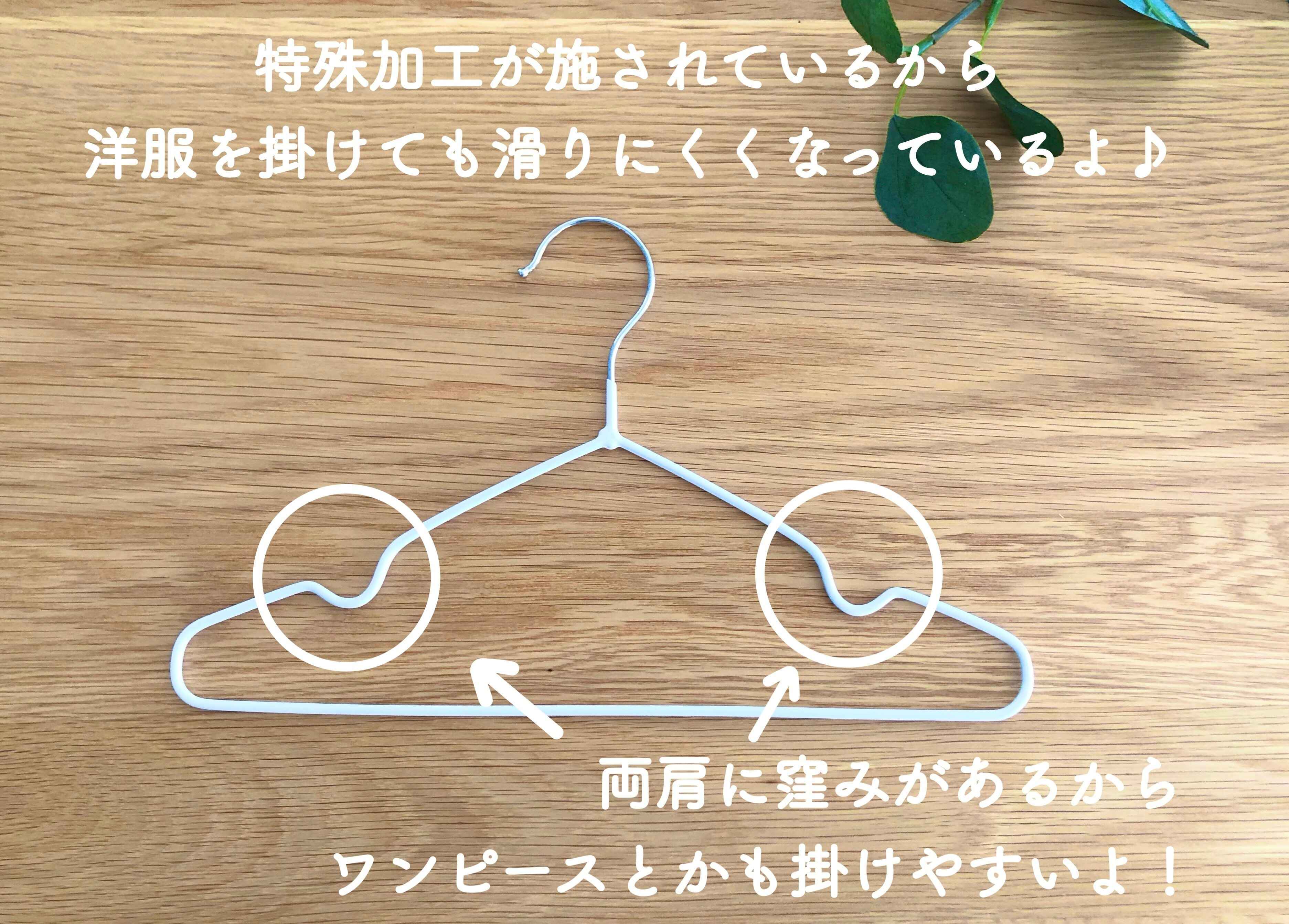 しかも両肩に窪みがあるのでワンピースなども掛けやすく、まさに至れり尽くせりです。