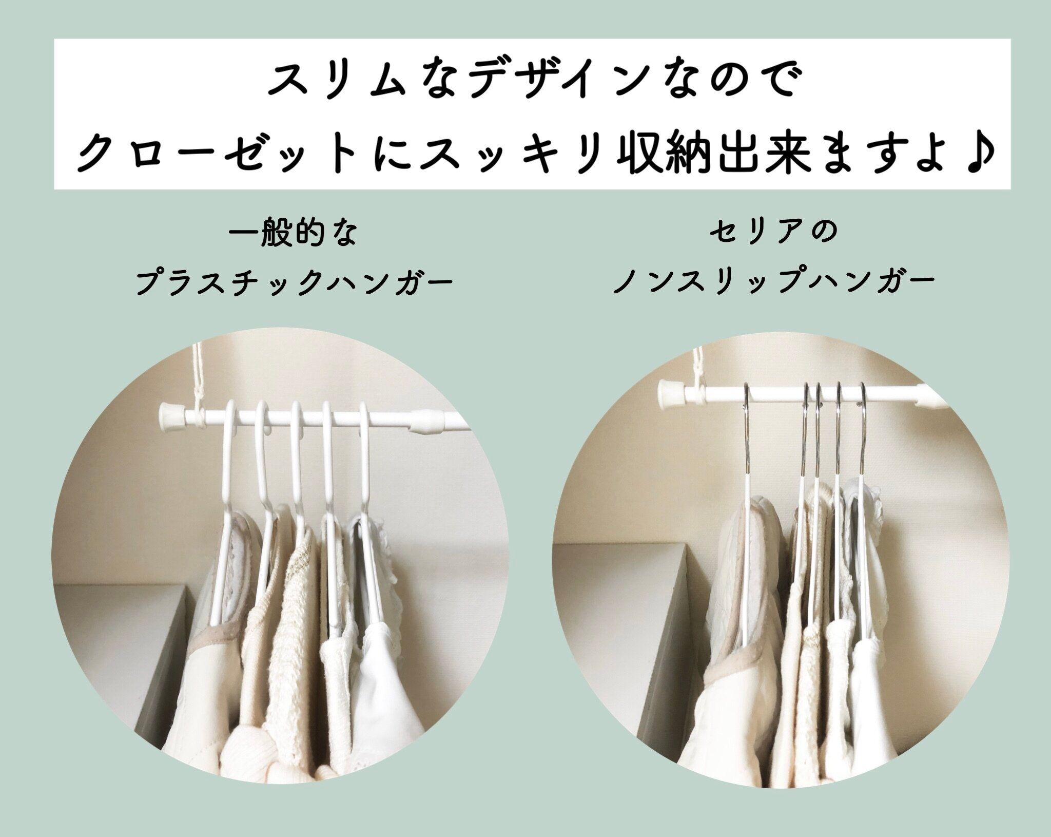 これならクローゼットにたくさん洋服を掛けても、洋服がかさばらずにスッキリ収納出来ます。