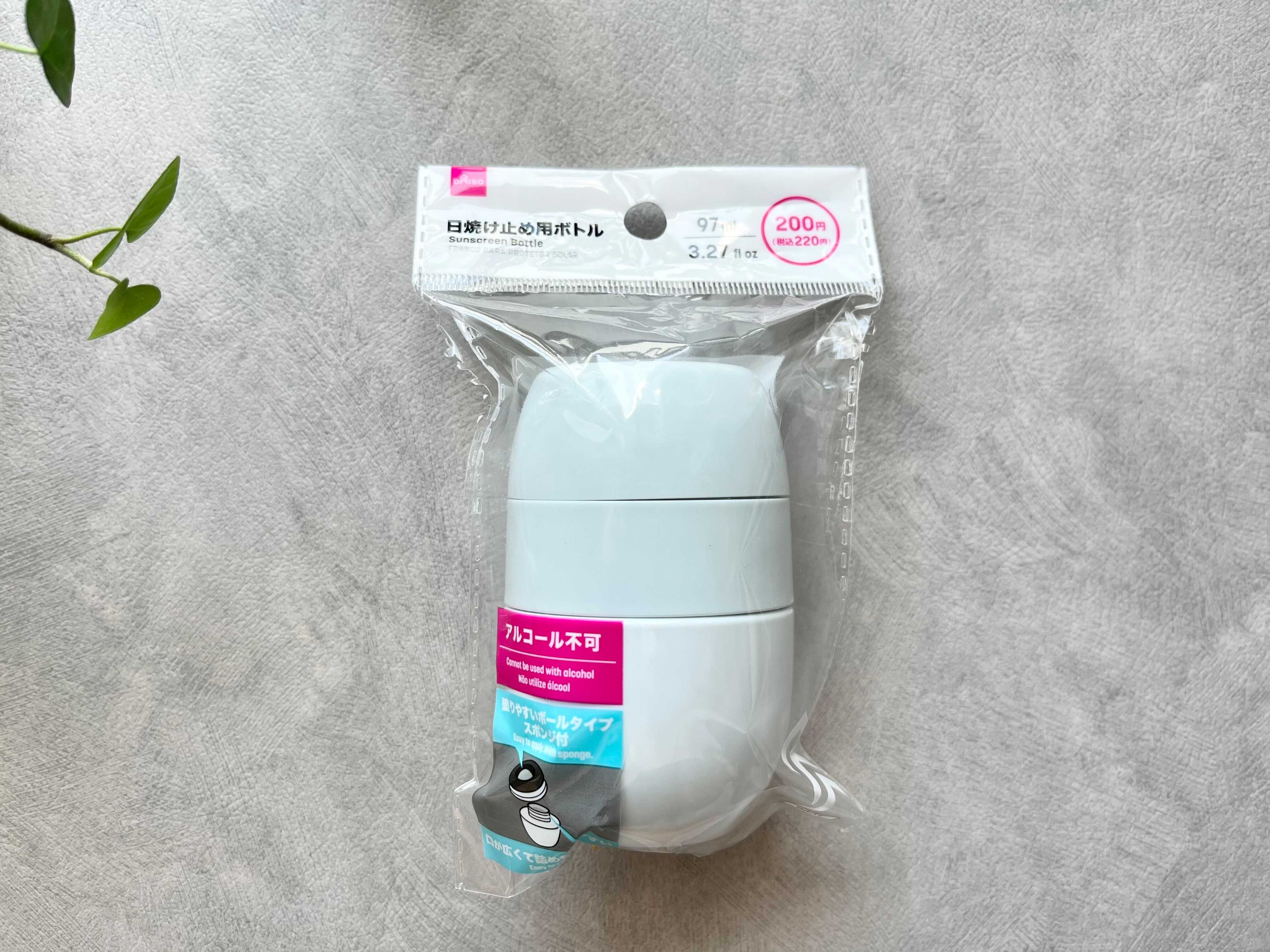 ご紹介するのは、ダイソーの「日焼け止め用ボトル」。こちらの商品は、日焼け止めを塗る時に手がベタベタになって汚れてしまうという悩みを解消できる、画期的な便利グッズです。価格は220円で販売されています。