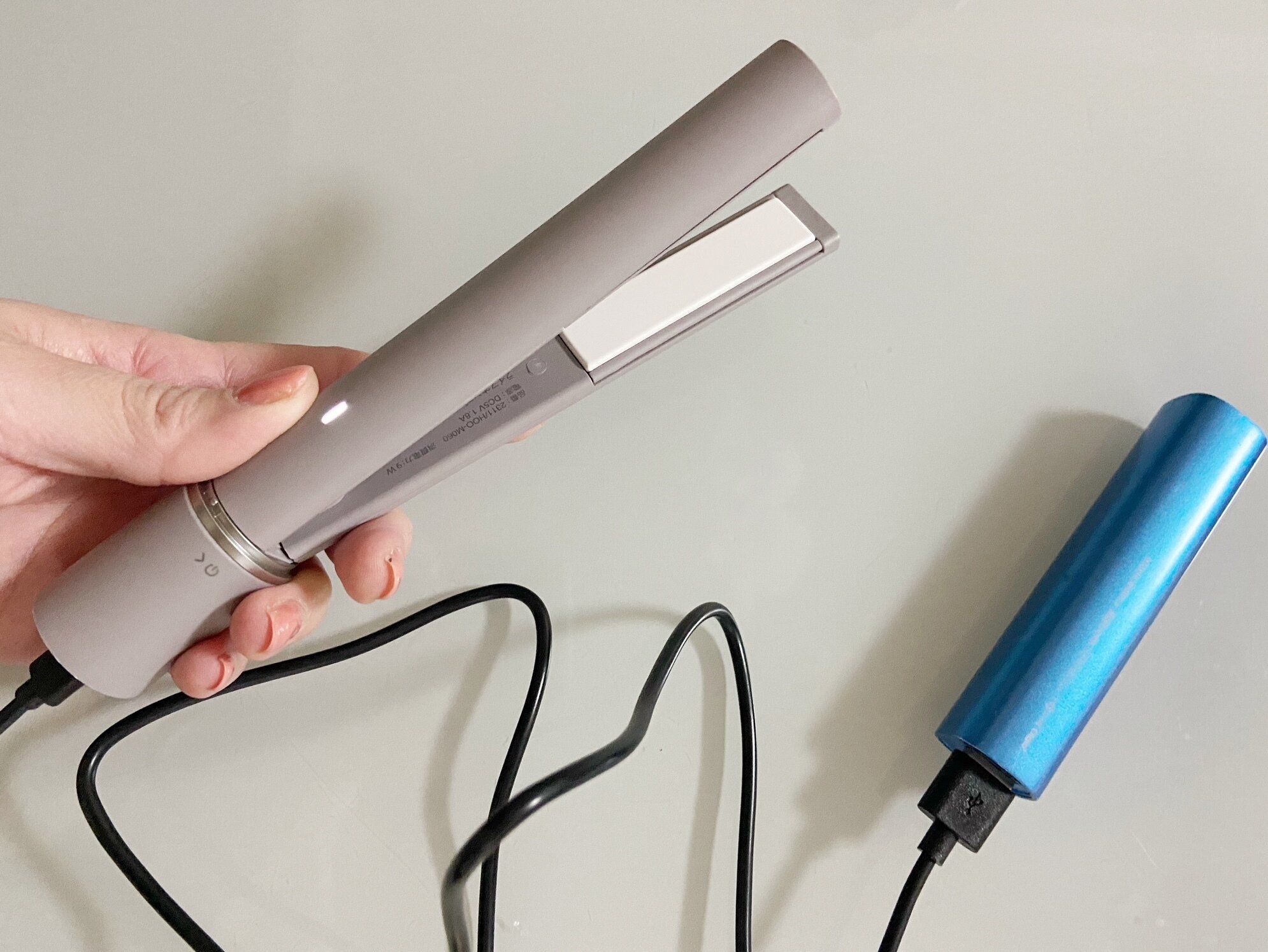 コンパクトなヘアアイロンなので、全頭のスタイリングに使うというよりは前髪など細かい部分のお直しにピッタリのサイズ感。モバイルバッテリーを接続すればその場ですぐに使えるのでコンセントがない場所でも使用できます。温度は約145℃まで上がります。