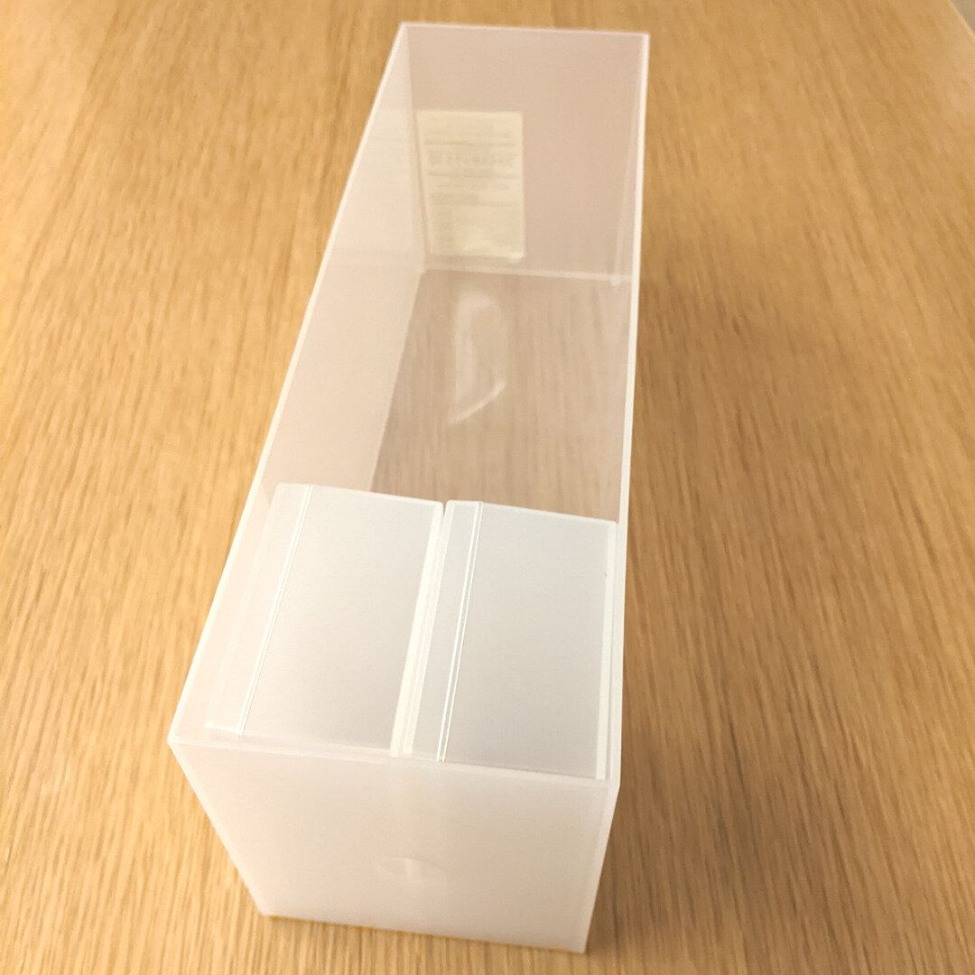 無印良品の幅10cmのファイルボックスに2つぴったりおさまります。