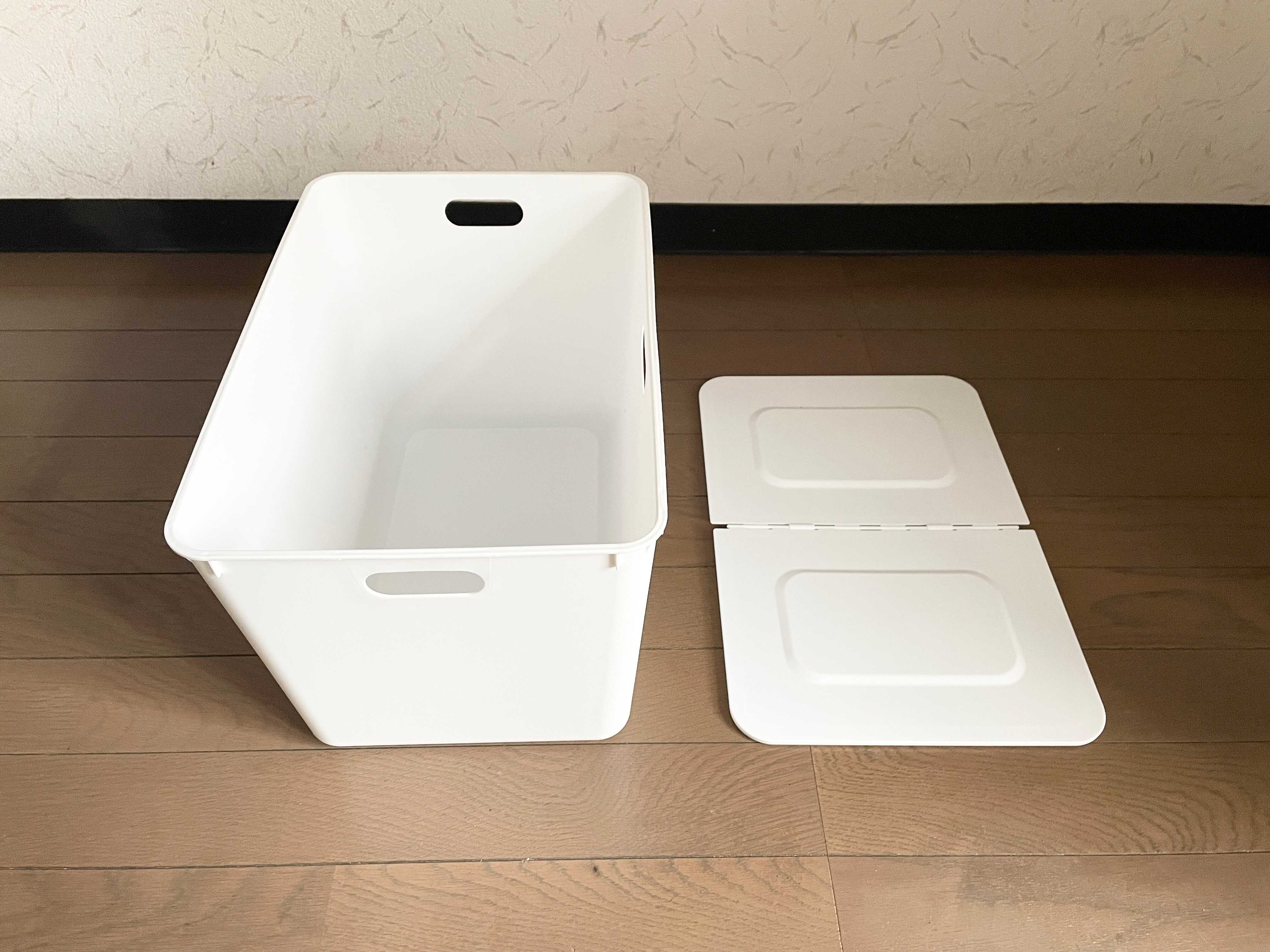 フタがあった方が見た目はいいけど、いちいち外すのが面倒と思っていました。でも、フタを外さず片方ずつ開けられるからその心配はなし!フタのわずらわしさがなくなった、おすすめ収納ボックスです。
