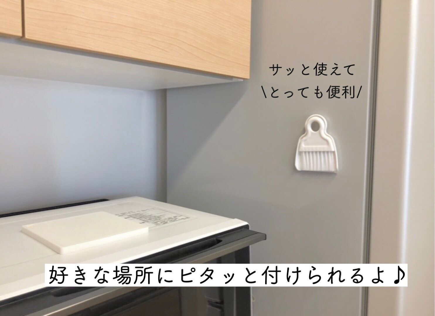 こちらが好きな場所にピタッとくっつけられて便利なお掃除グッズ、『ミニほうき&ちりとりセット』です。
