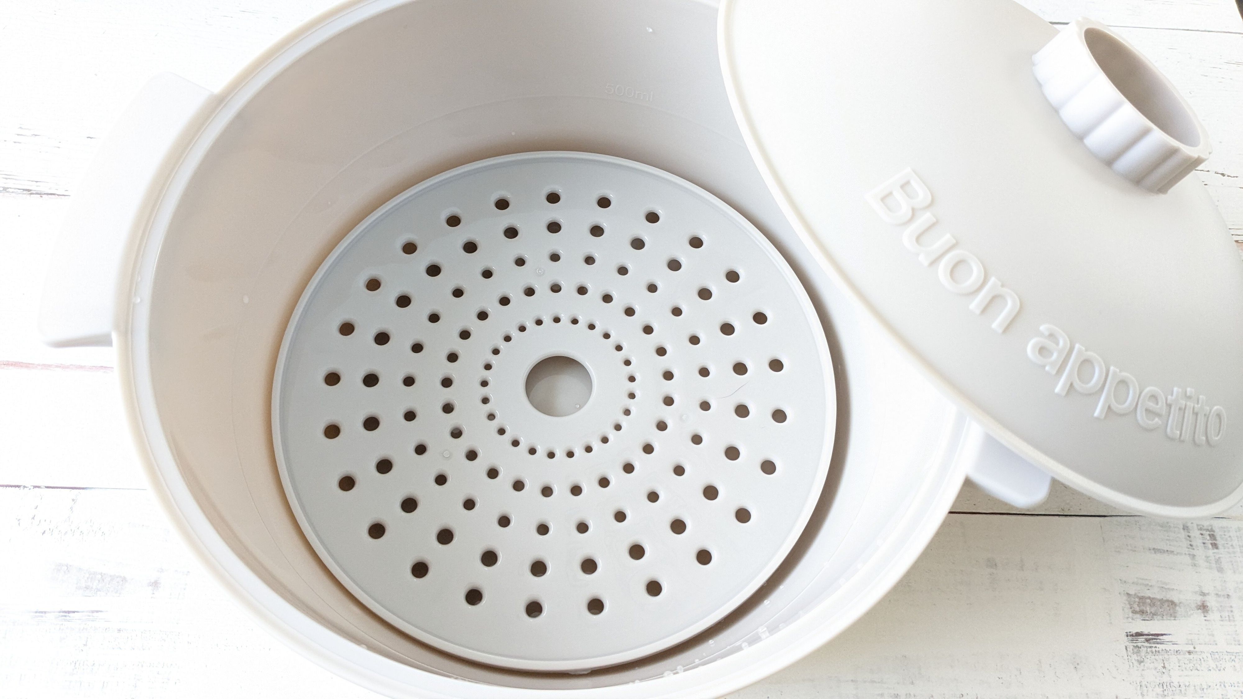 電子レンジでラーメンや蒸し野菜、鍋料理がつくれる調理器具です。