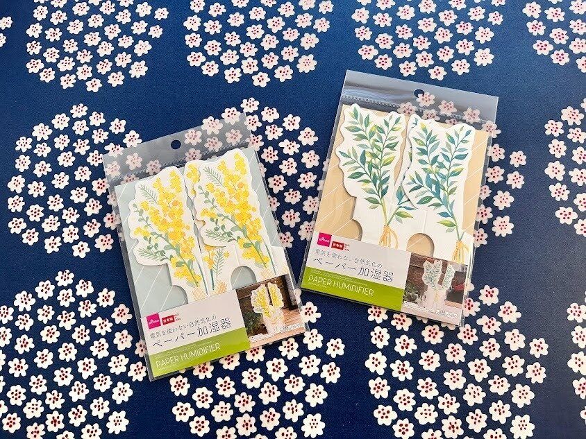ダイソーの『ペーパー加湿器』です。価格は110円。ミモザJANコード:4550480193670、オリーブJANコード:4550480185392