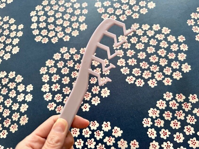 一見、しゃもじのような見た目にびっくりですが、風がとおりやすい形状になっているブラシなんです。この隙間のおかげで風がとおりやすく、ドライヤーを当てながらブローがしやすくなっていますよ。