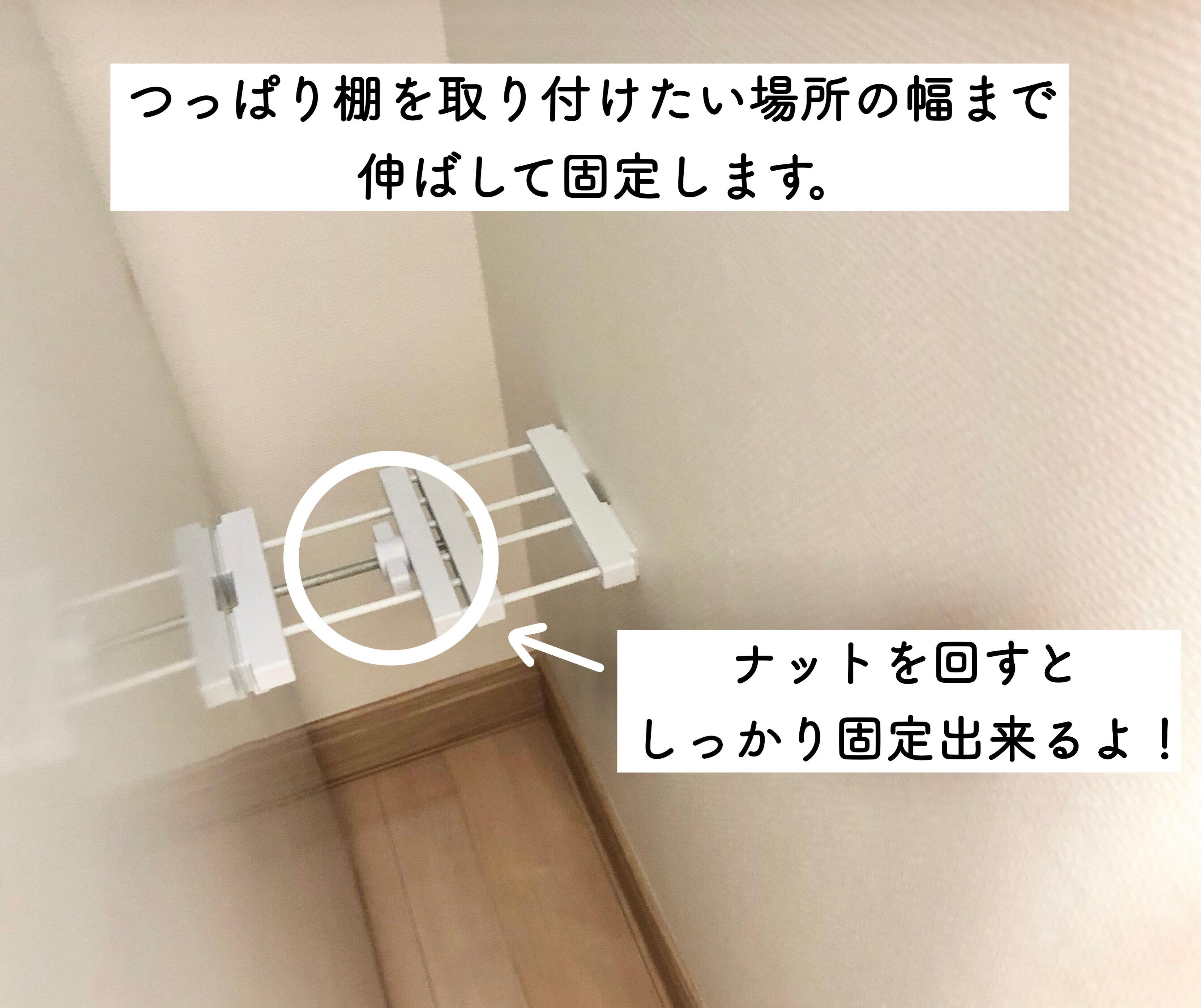 • つっぱり棚の幅を調整して固定する。