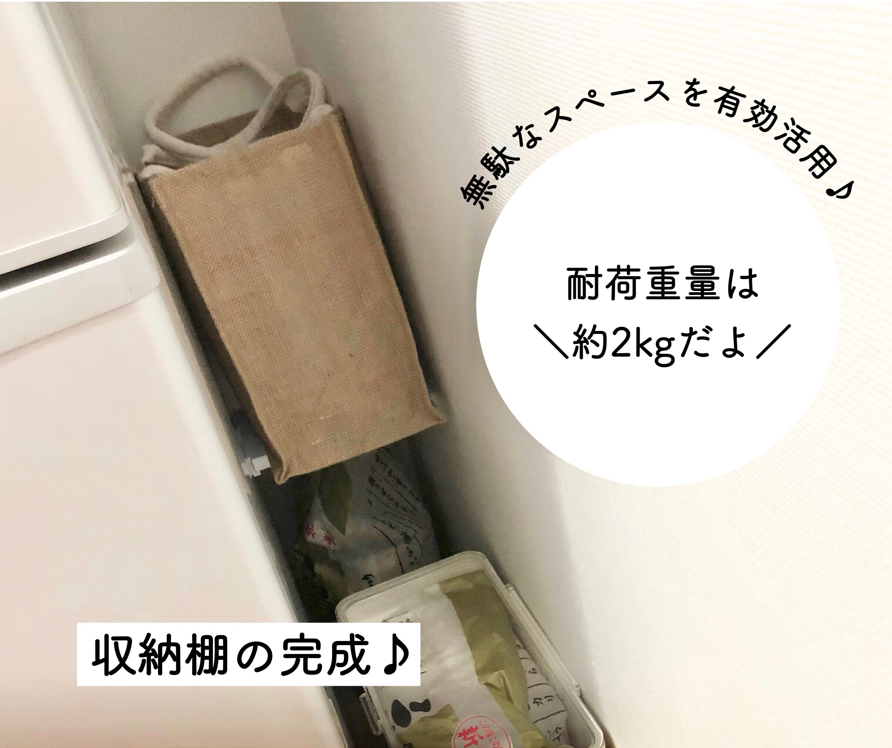 たったこれだけで微妙な隙間に収納棚をつくることができますよ。