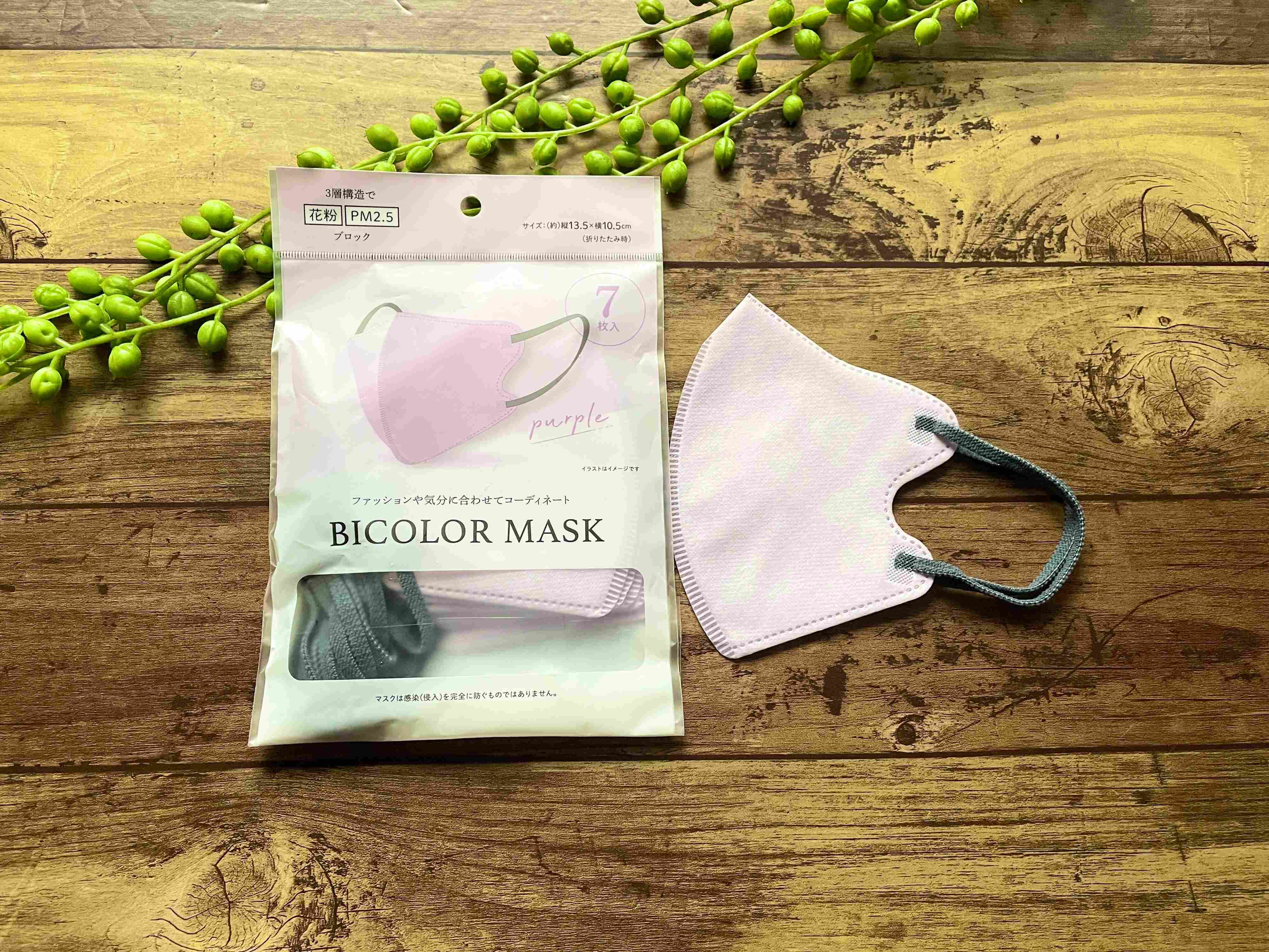 「きれいな色のバイカラーマスクが100均で買える」と瞬く間にSNSで大人気になり、一時は入試困難だったほどなんです。私もパープル×ダークグレーしか入手できませんでした…。