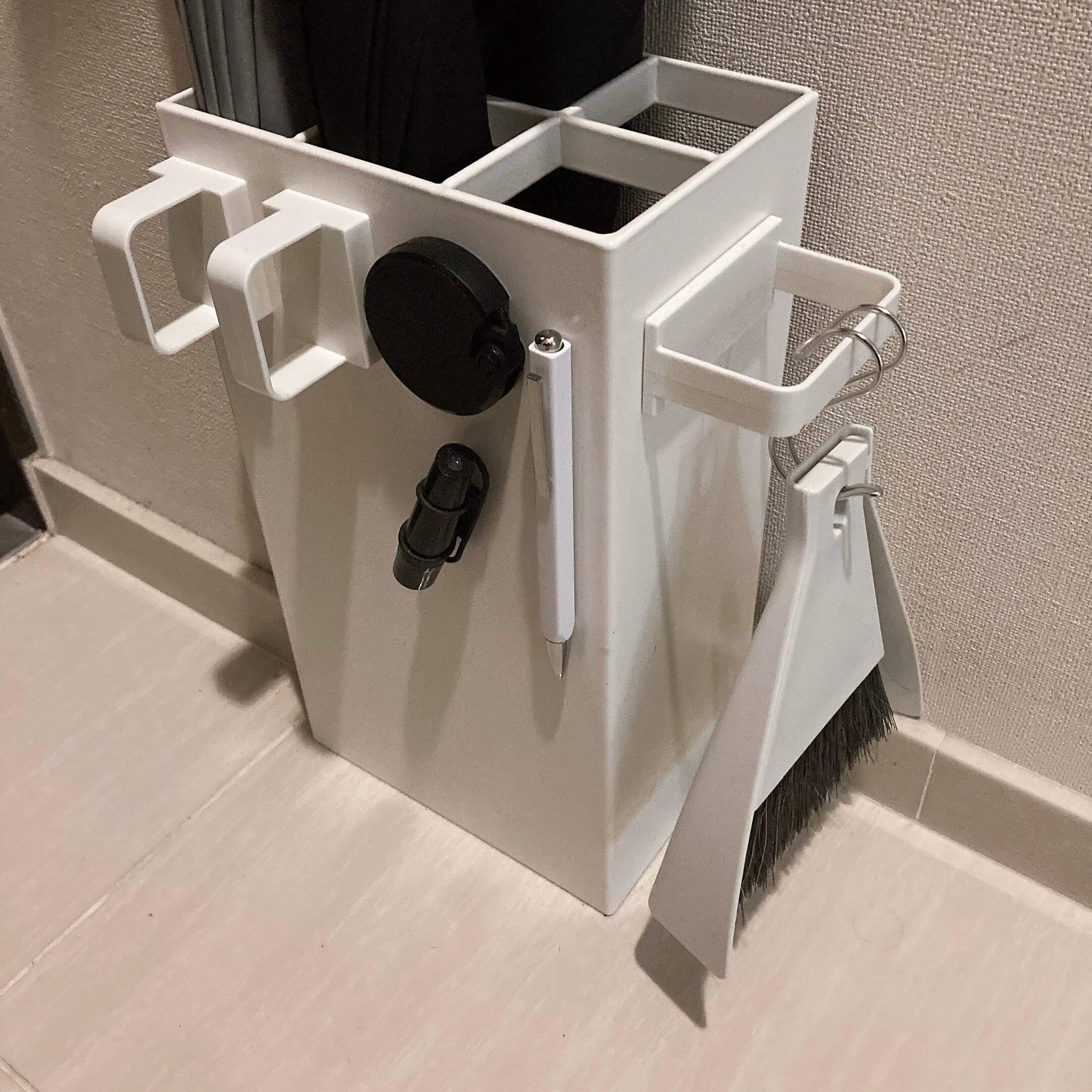 我が家は玄関に置いてある傘立てにペタッと貼り付けています。