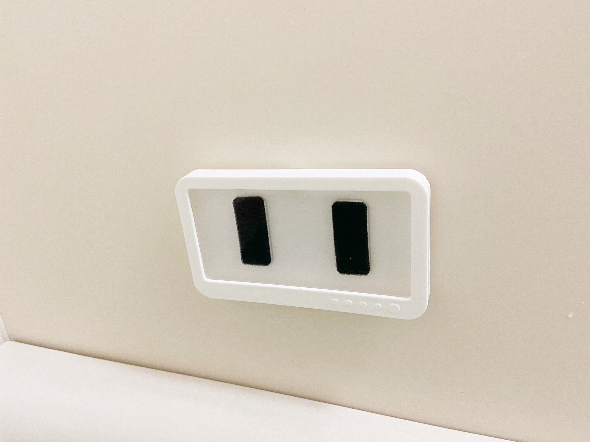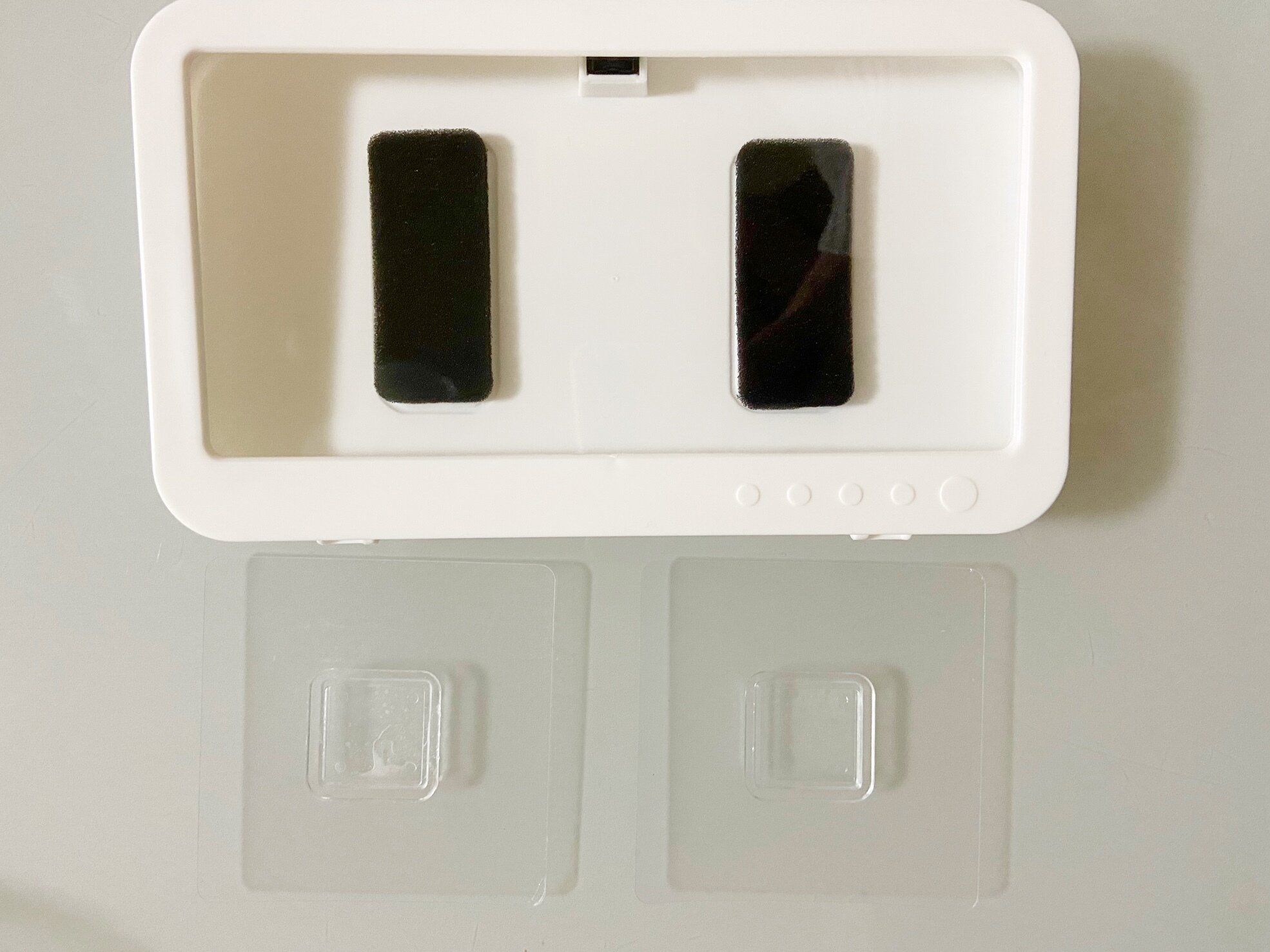 ダイソーの「防滴スマホホルダー」は本体と一緒に粘着シートが2枚セットになっています。2枚あるので浴室とキッチンなど好きな場所2カ所に取り付けられちゃいます。