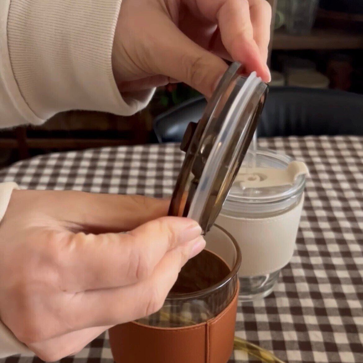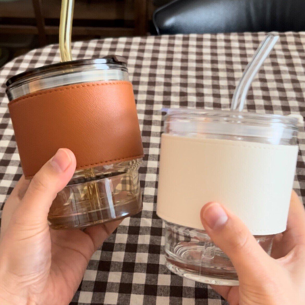 見た目がおしゃれなスリーブ付きガラスタンブラー。