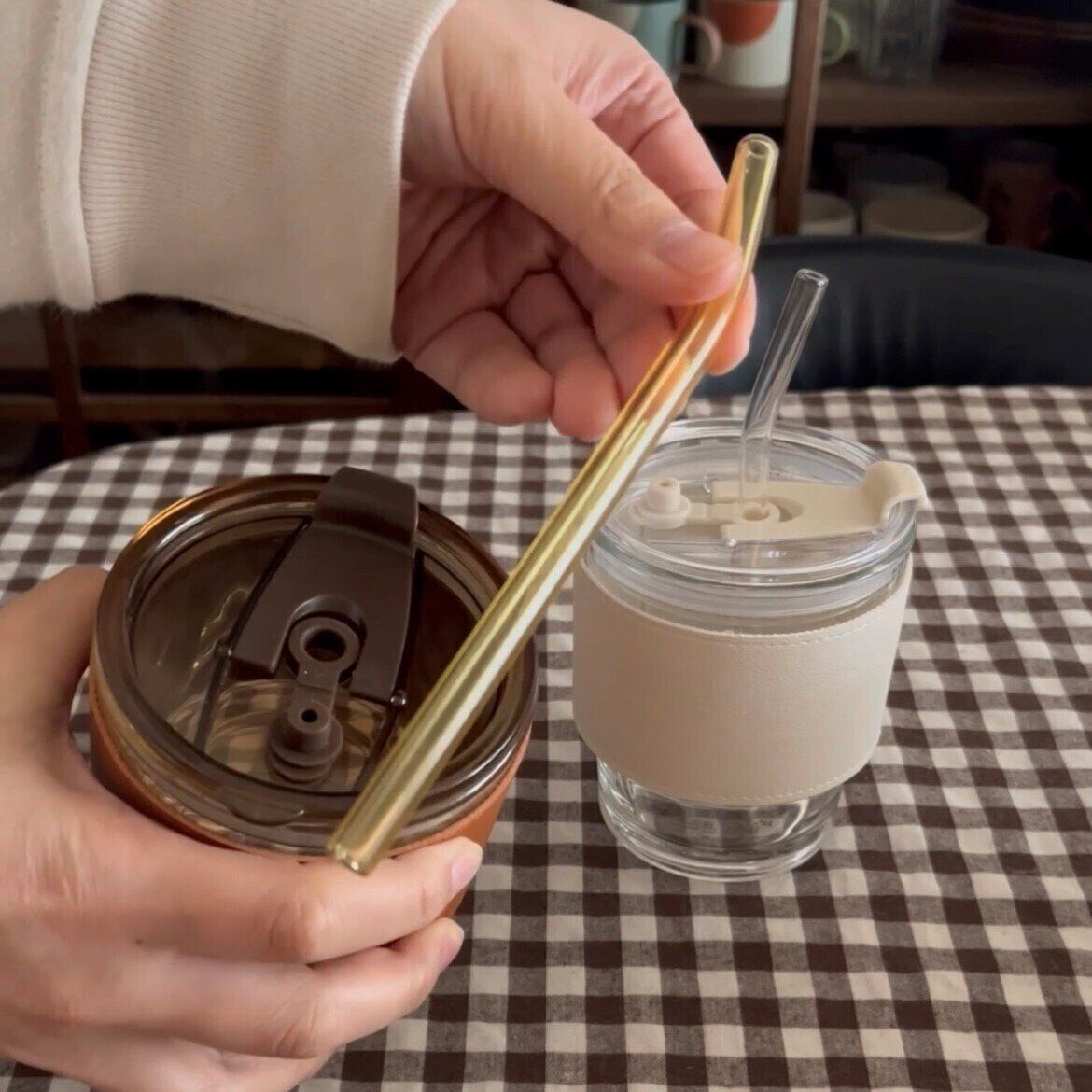 ガラスのストローがついているんです。