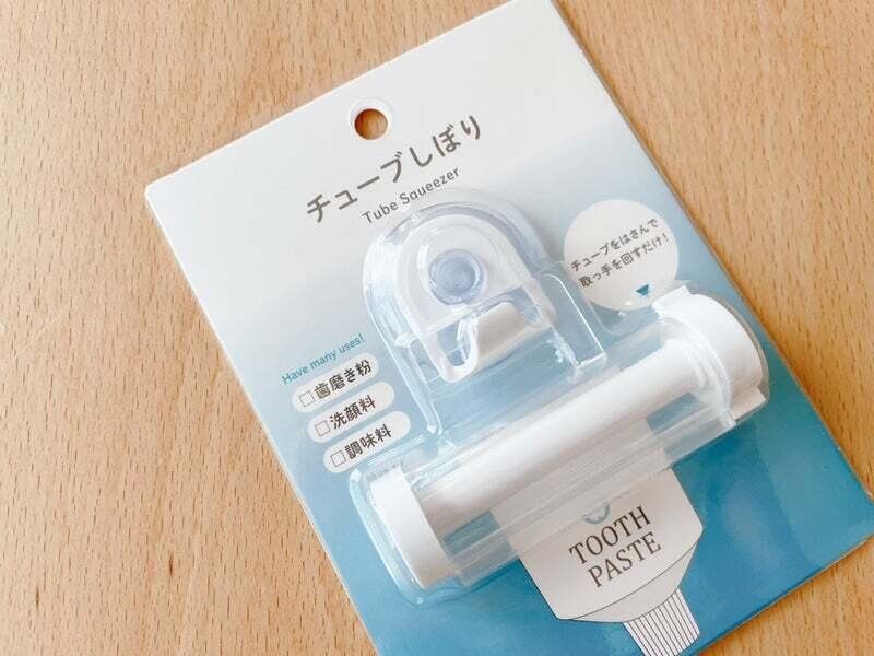 洗面所とお風呂場の2か所で使っていて、最近パーツが壊れたけれどやっぱりコレじゃないと、と買い直したアイテムがセリアの「チューブしぼり(110円)」です。