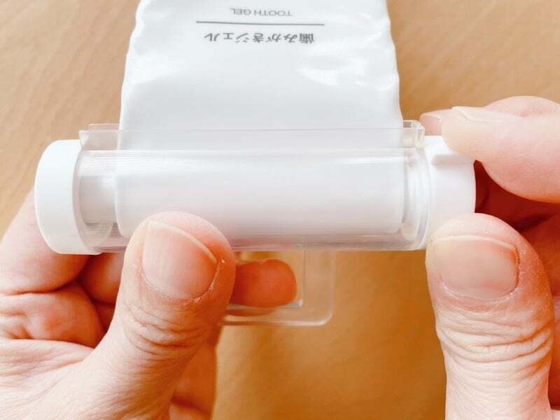 洗顔フォームや調味料は吊るしているだけでも中身が下に集まるので使い切るのが難しくないのですが、しぼらないと中身を最後まで使い切れないのが歯磨き粉。そんな歯磨き粉をしぼらずに最後まで綺麗に使い切れるアイテムなんです。