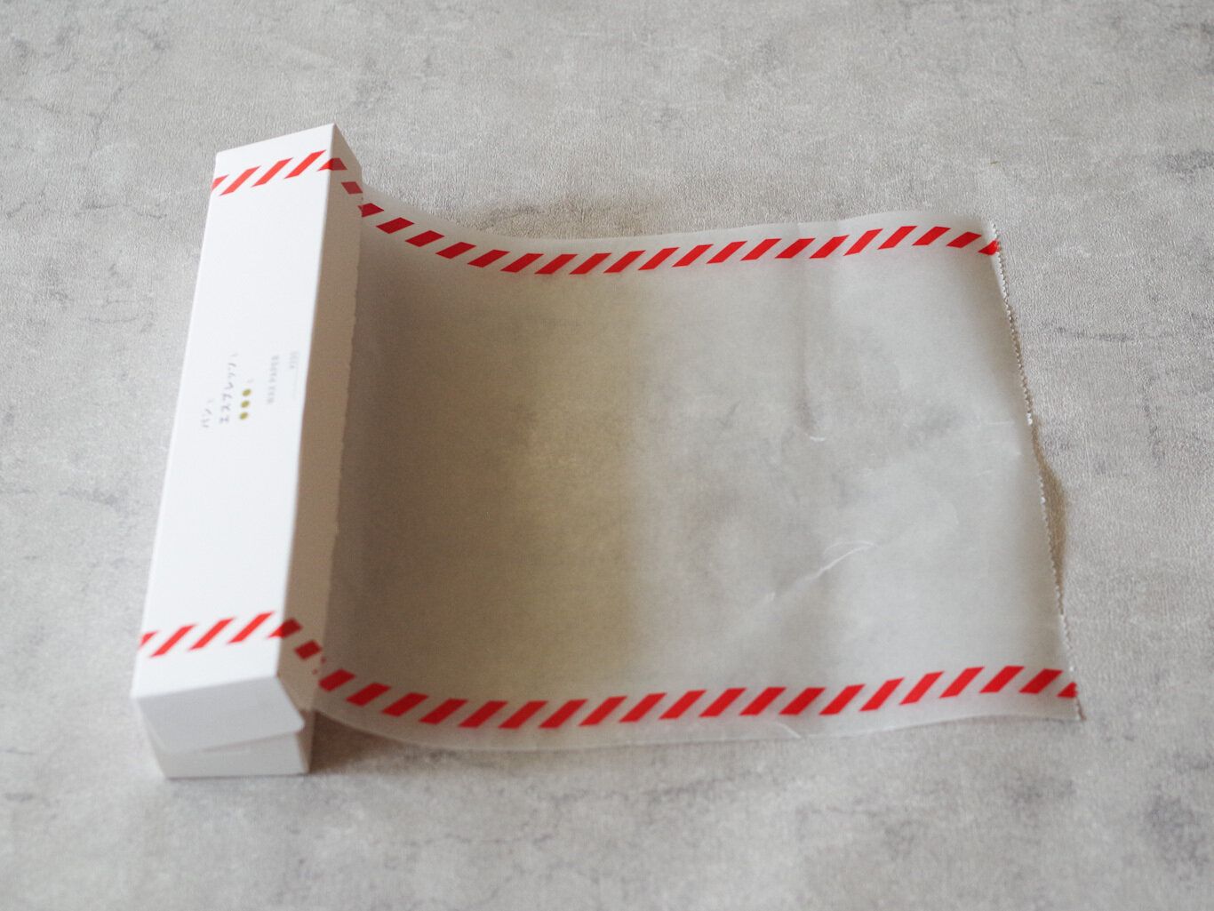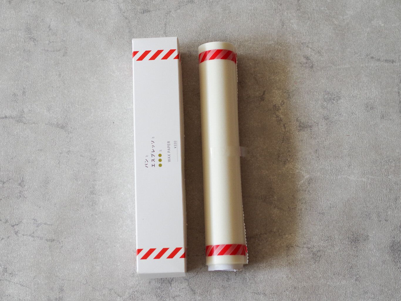 赤色のラインが映えるワックスペーパーロールですね!いろいろな食器にマッチしそうで、ワクワクします。