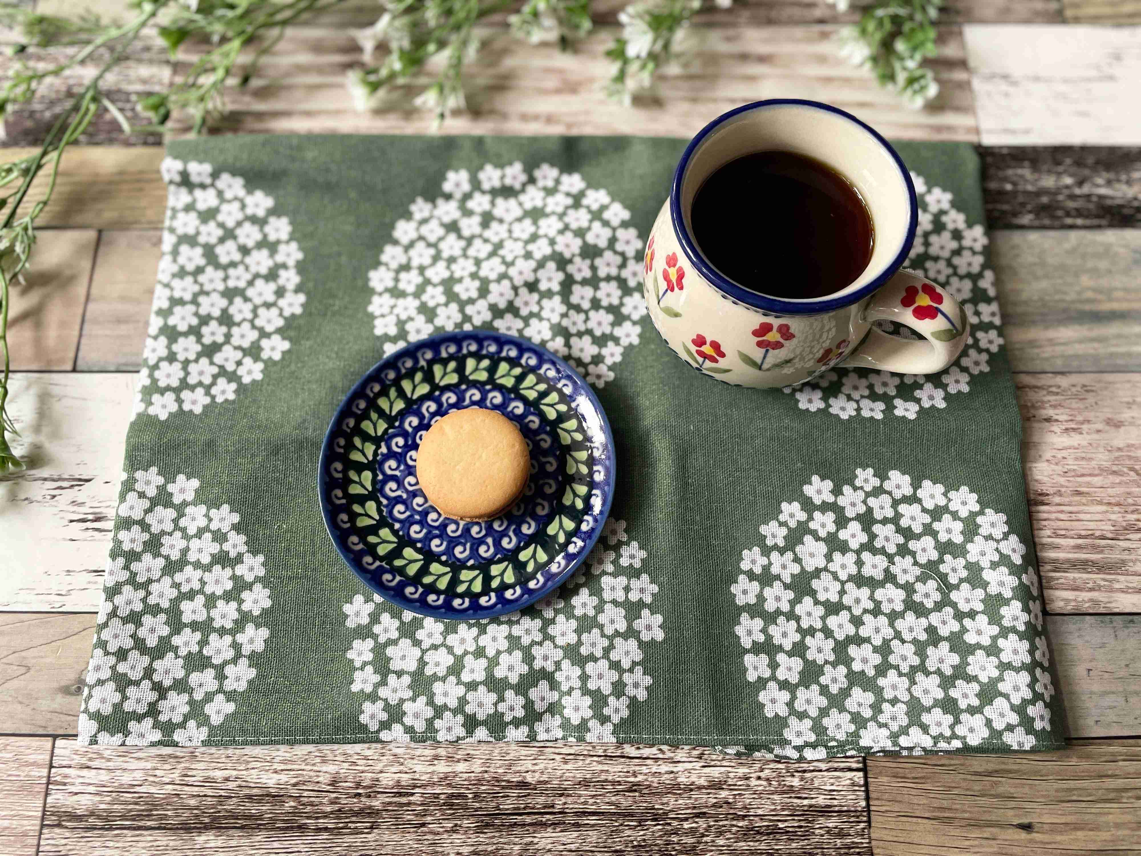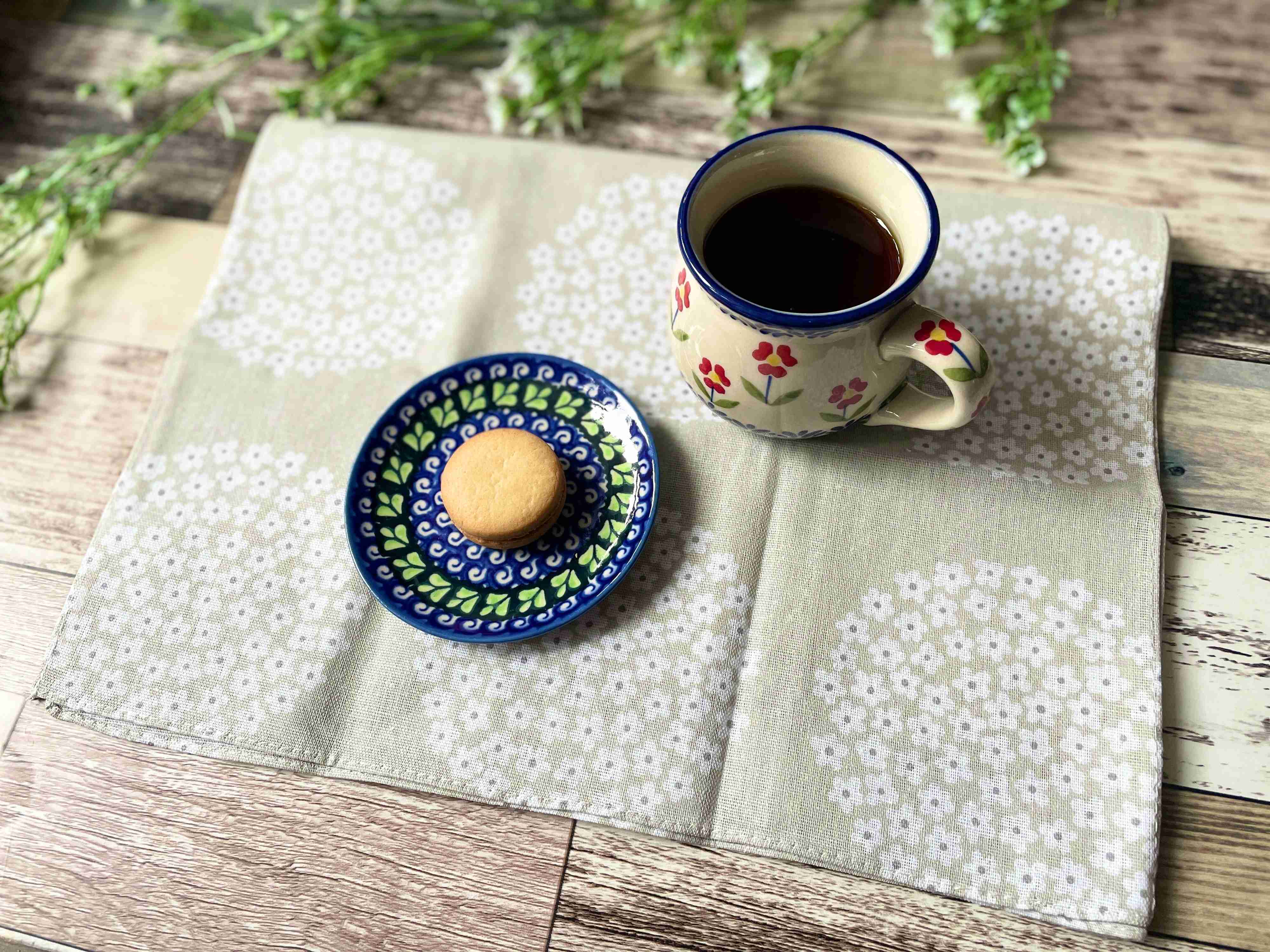 今回はコーヒーとクッキーに合わせてみましたが、素材が手ぬぐいだからか緑茶など和風でもいけそうな感じに見えます。