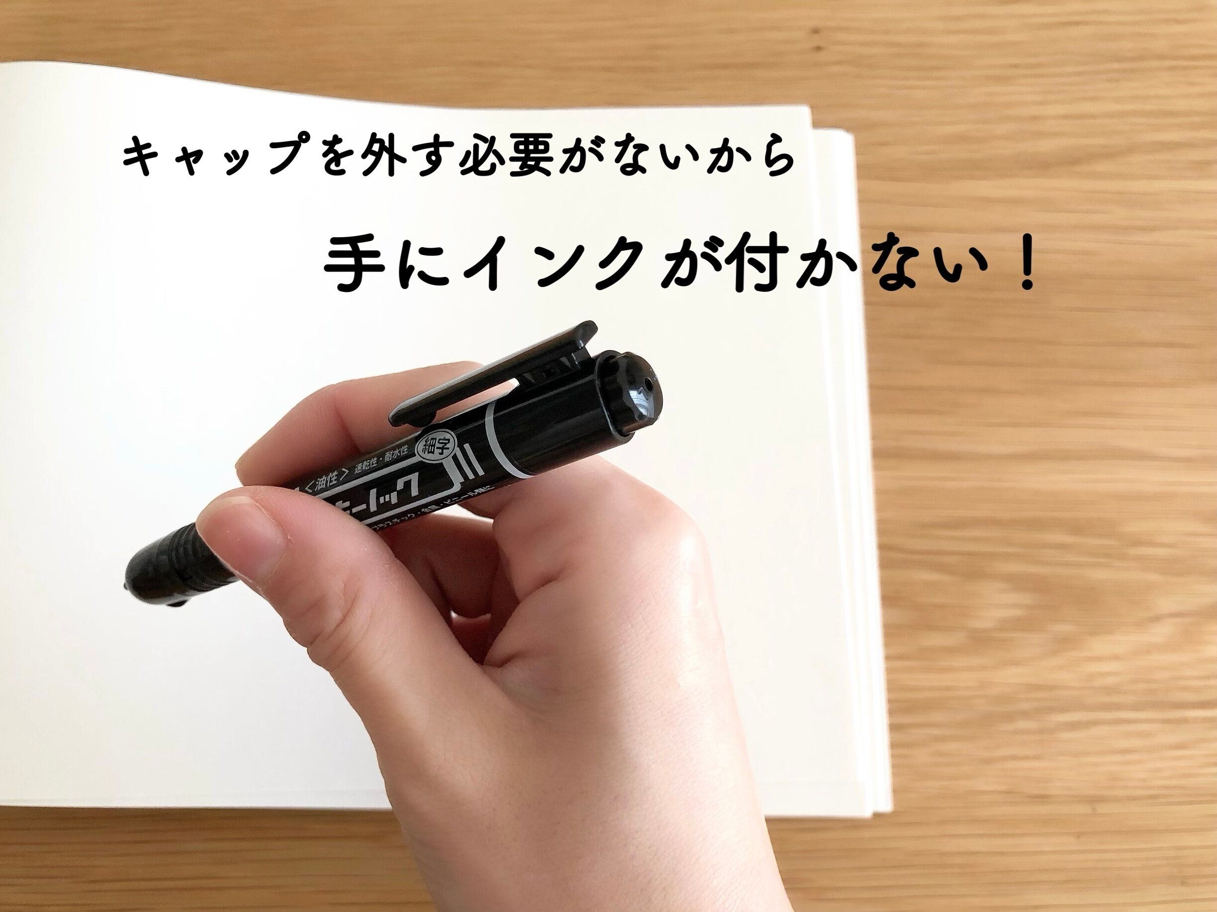 皆さん、油性マーカーってどのようなものを使っていますか?私は今まではキャップとペンが別々になっている、キャップ式のものを使っていました。でもキャップ式の油性マーカーって使う時に少しプチストレスを感じている部分があったんです。