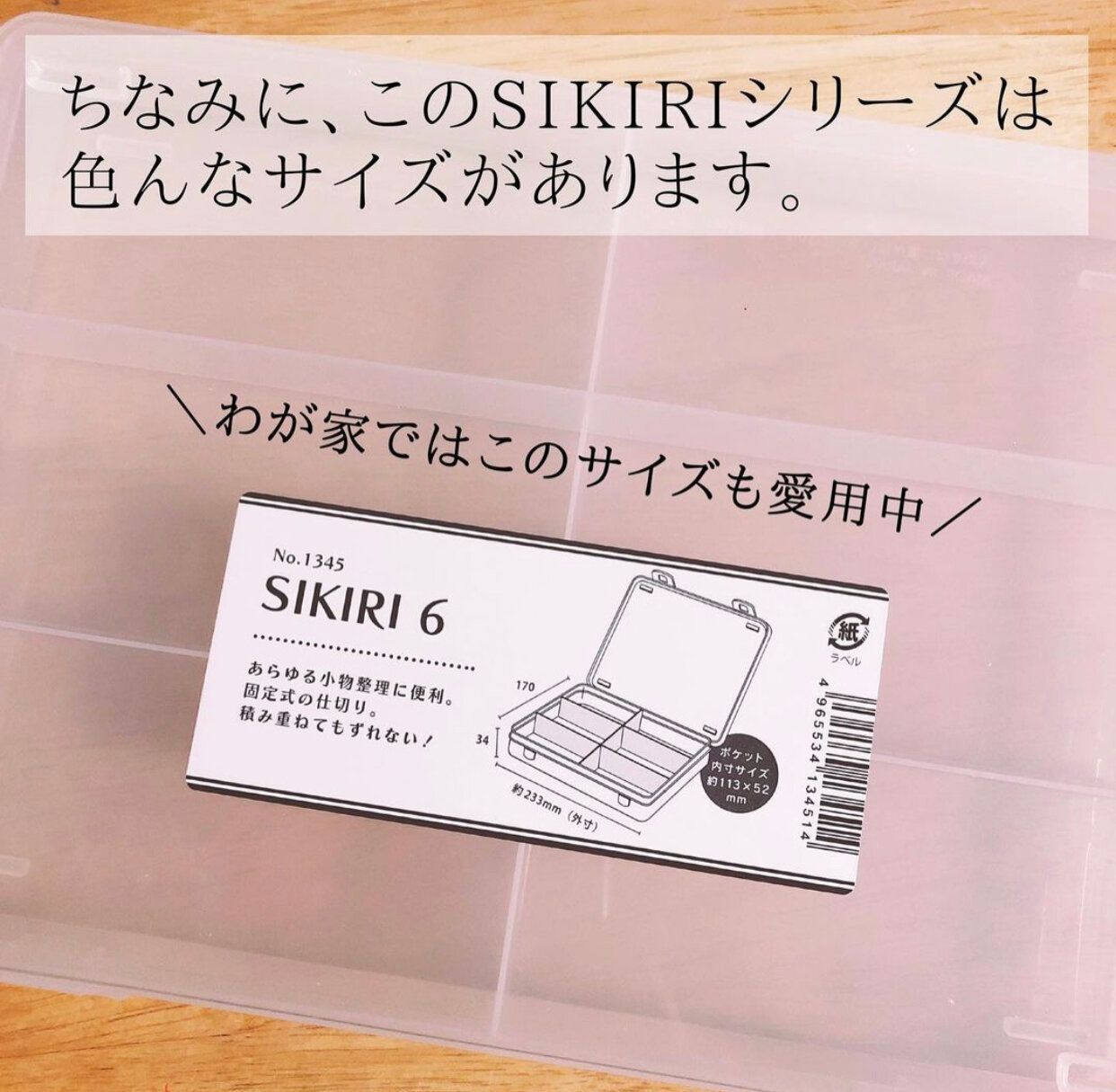 SIKIRIシリーズは仕切りの大きさやケースの大きさによって色んなサイズがあるのですが、私はSIKIRI 6も愛用しています。おもちゃの小さなパーツを入れたり、ハンドメイド用品を入れたり…とっても便利です。