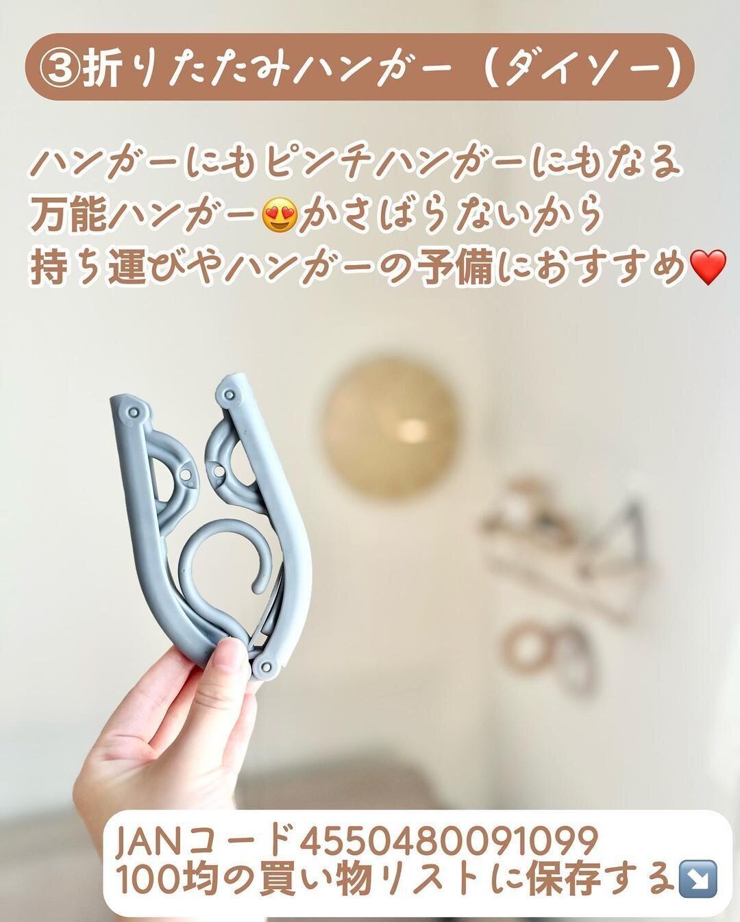 一見何だかわからないこちら…実は「折りたたみハンガー」なんです。広げると普通にハンガーとして使え、シャツなどをかけることができます。ポイントは「ピンチ付き」なところ!ピンチハンガーとして靴下なども干すことができますよ。旅行などの際に一つ持っておくと便利ですね。