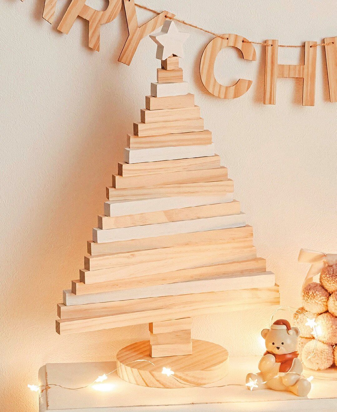 ナチュラルテイストの木製ツリーがトレンド。本格的なツリーを飾らないご家庭にもおすすめ。ぬくもりのあるデザインで、通年飾ってもOK!