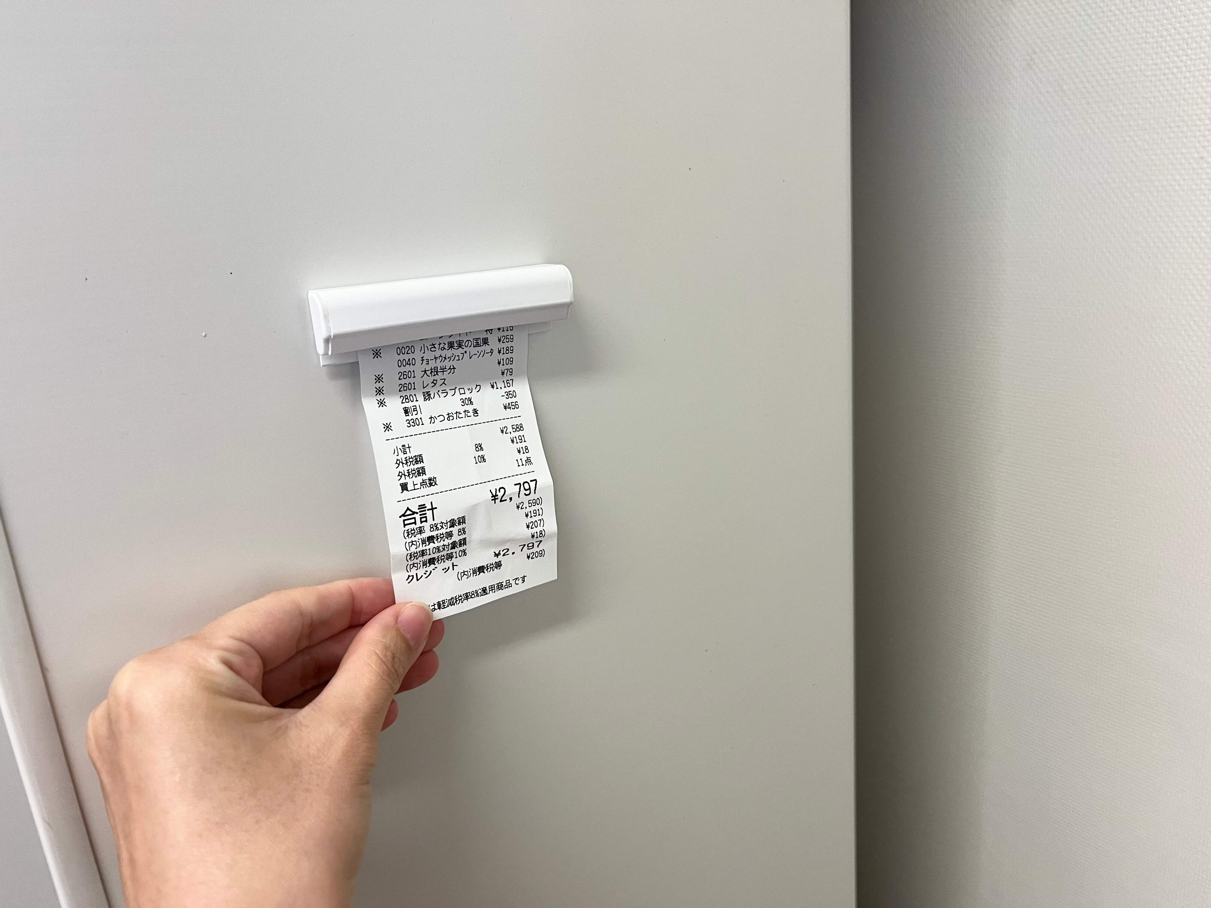 例えばキッチンの冷蔵庫に「差し込みメモクリップ」を貼っておけば、レシピや買い物メモ、レシートなどを置いておくのに便利!