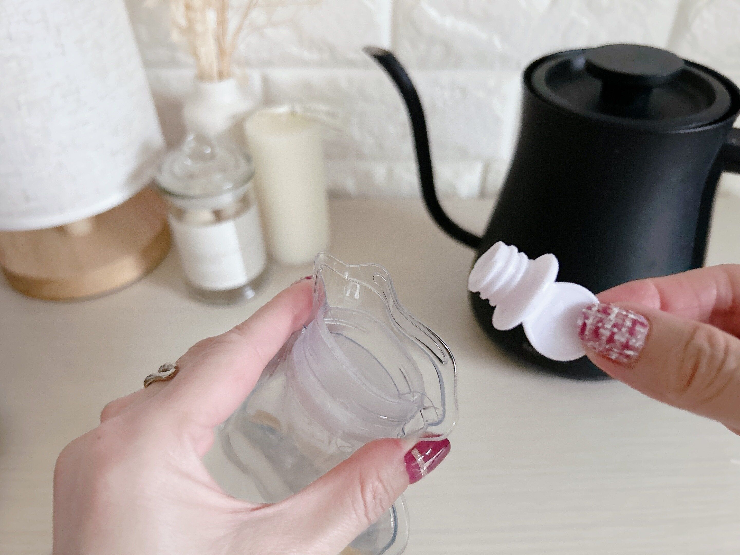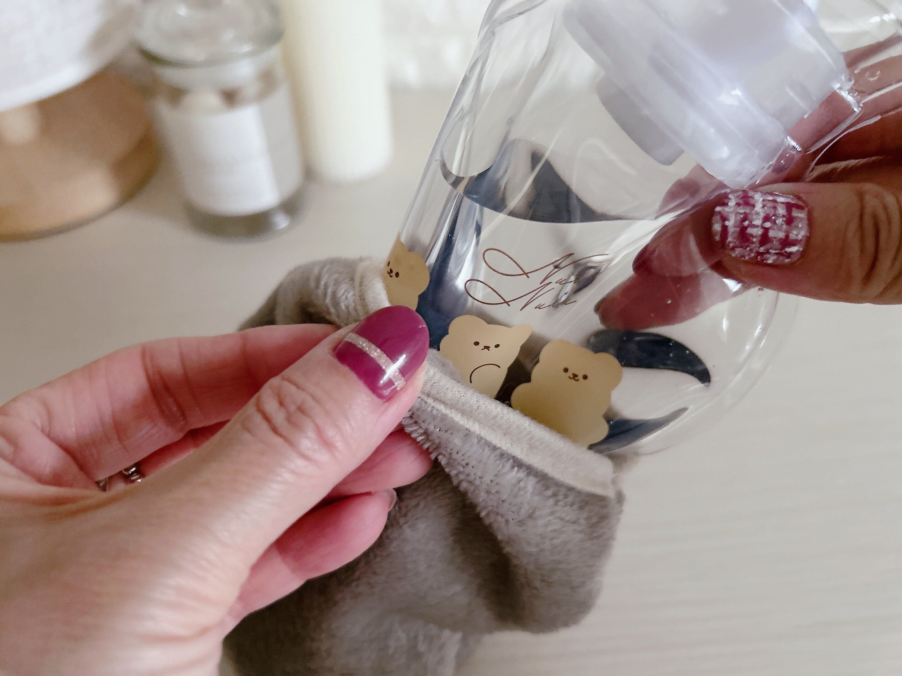 80℃のお湯を注ぐとき熱いので、お手持ちのタオルなどを本体に巻いてからお湯を入れます。