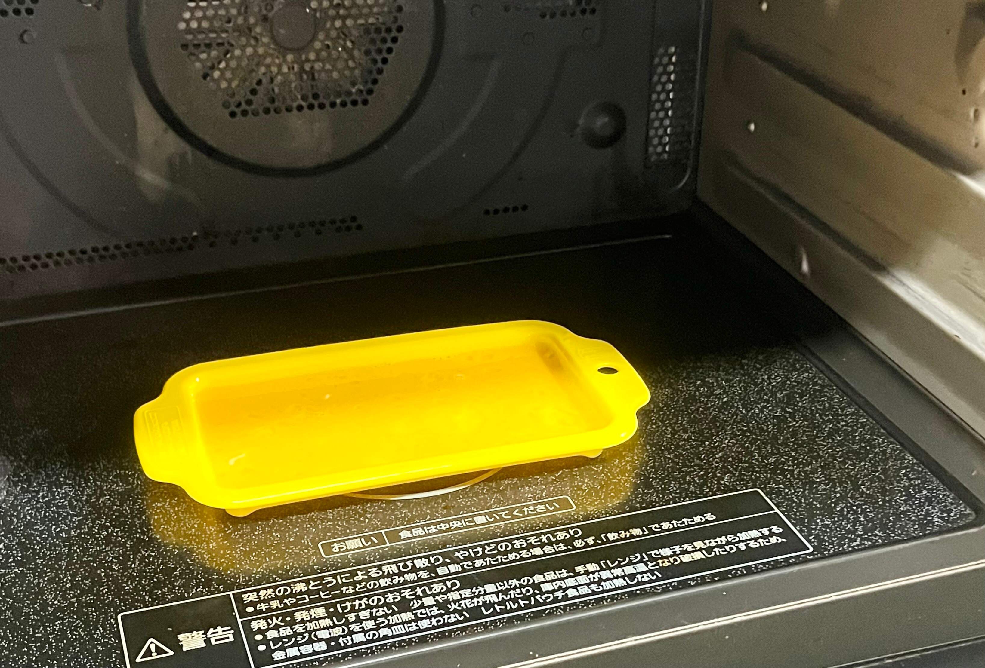 そして電子レンジに入れて、500Wの場合は約40秒、600Wの場合は約30秒加熱します。生焼けの部分がある場合は、5~10秒ずつ様子を見ながら追加で加熱してください。加熱が終われば、薄焼きたまごのできあがり!本当にあっという間に薄焼きたまごが超簡単に作れちゃいます!