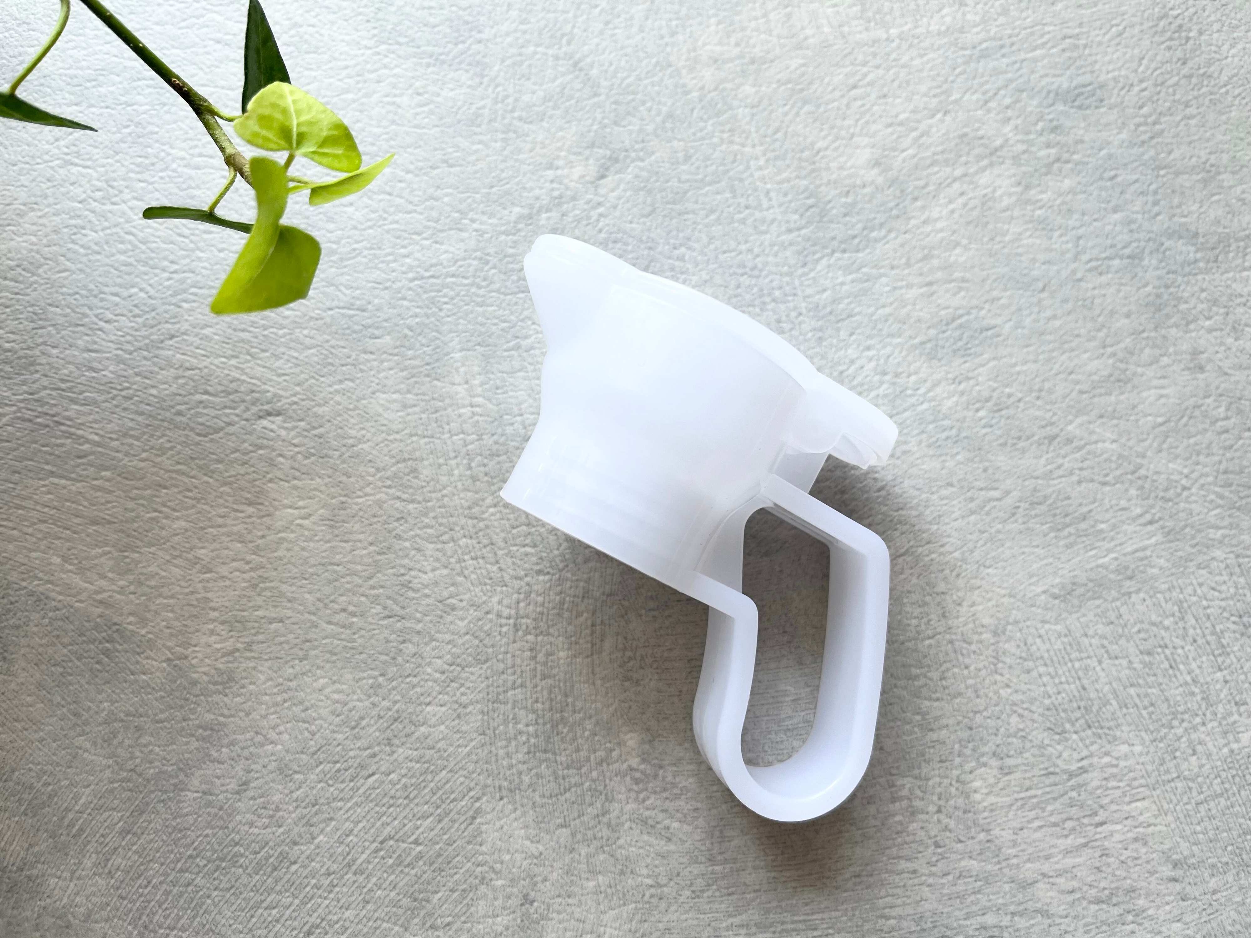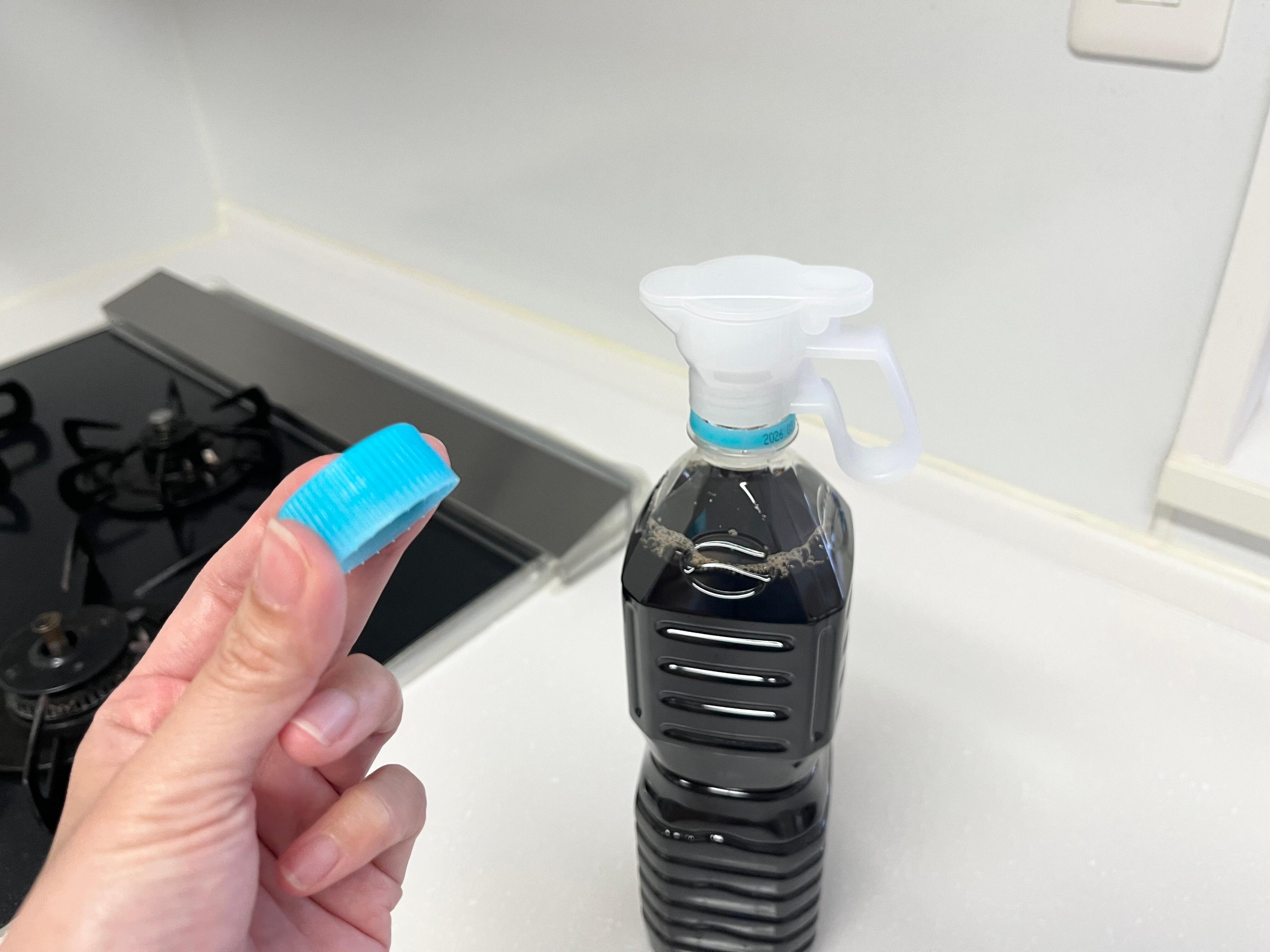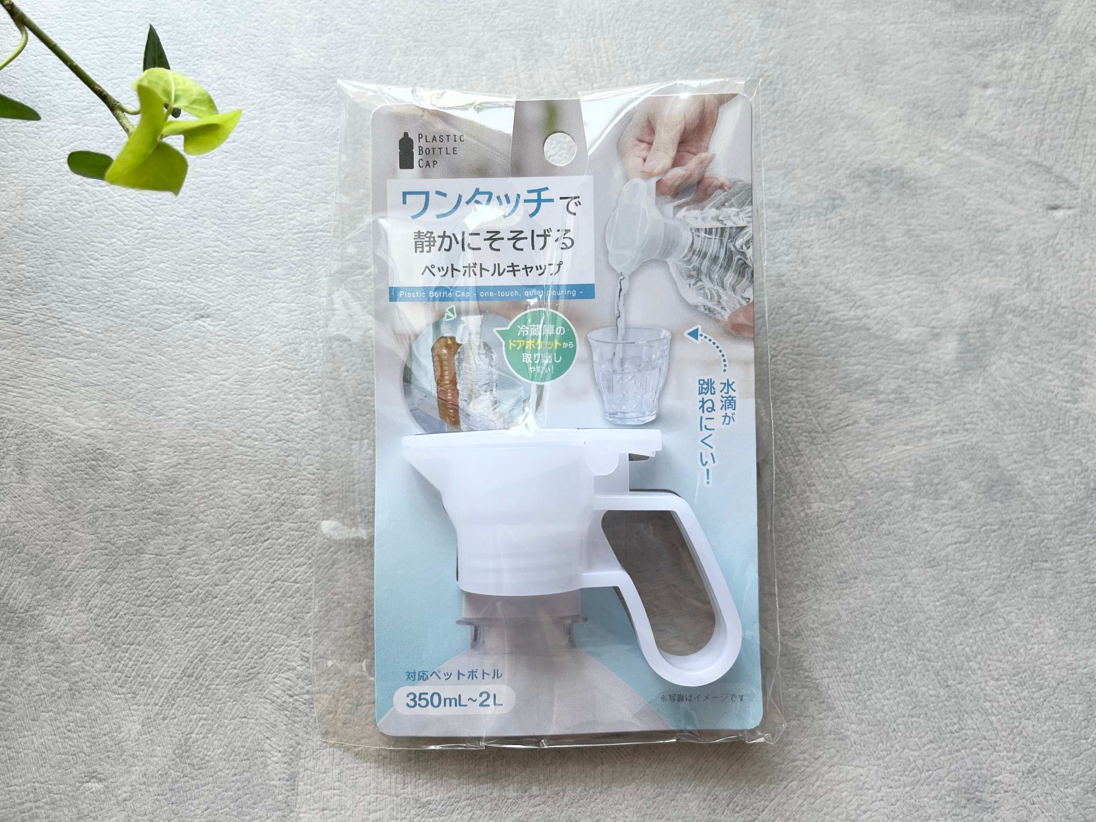 見た目は取っ手付きのキャップという感じのデザイン。350mlから2Lのペットボトルに対応している商品です。