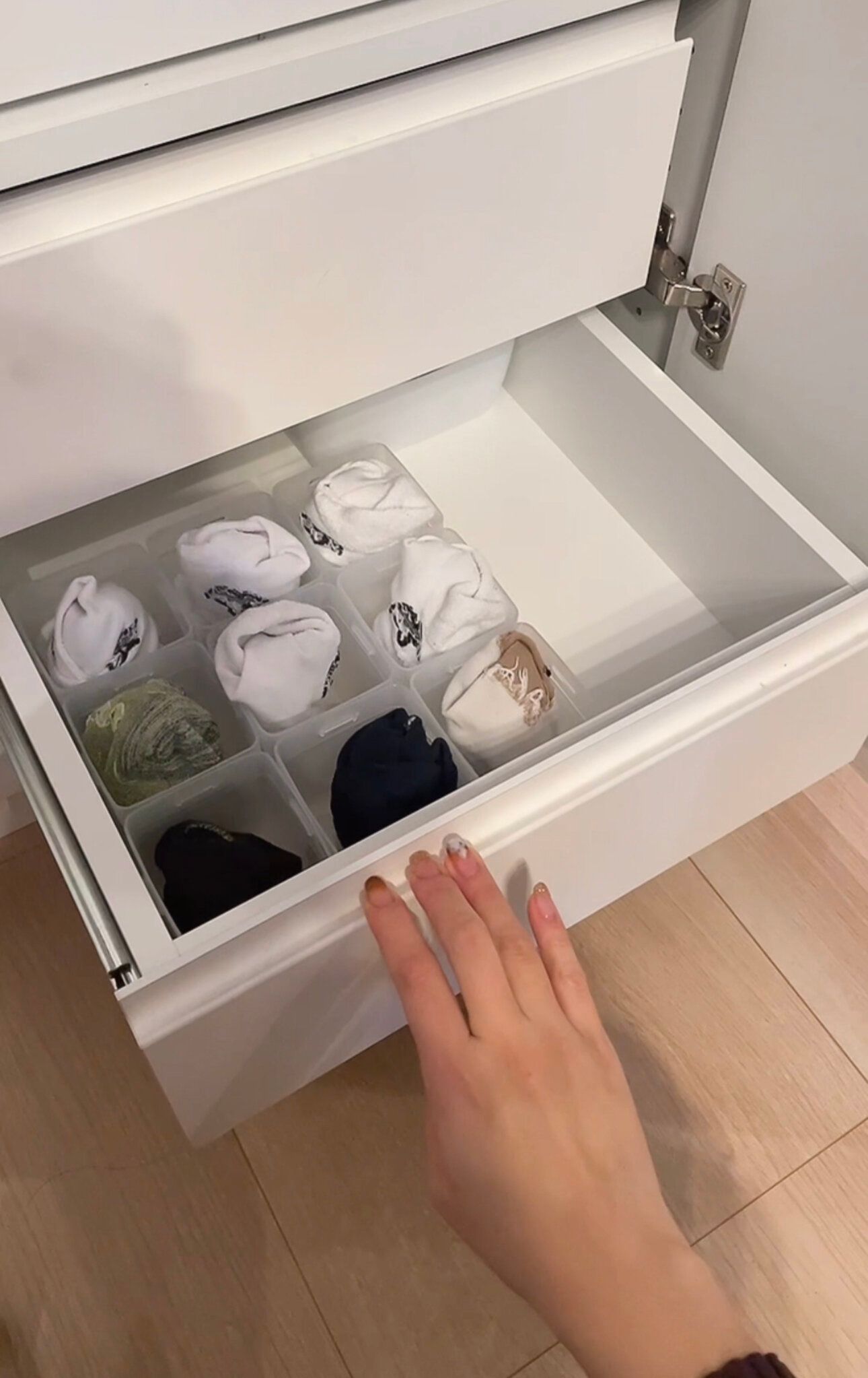 引き出しの中のソックスを見やすく取り出しやすく収納。