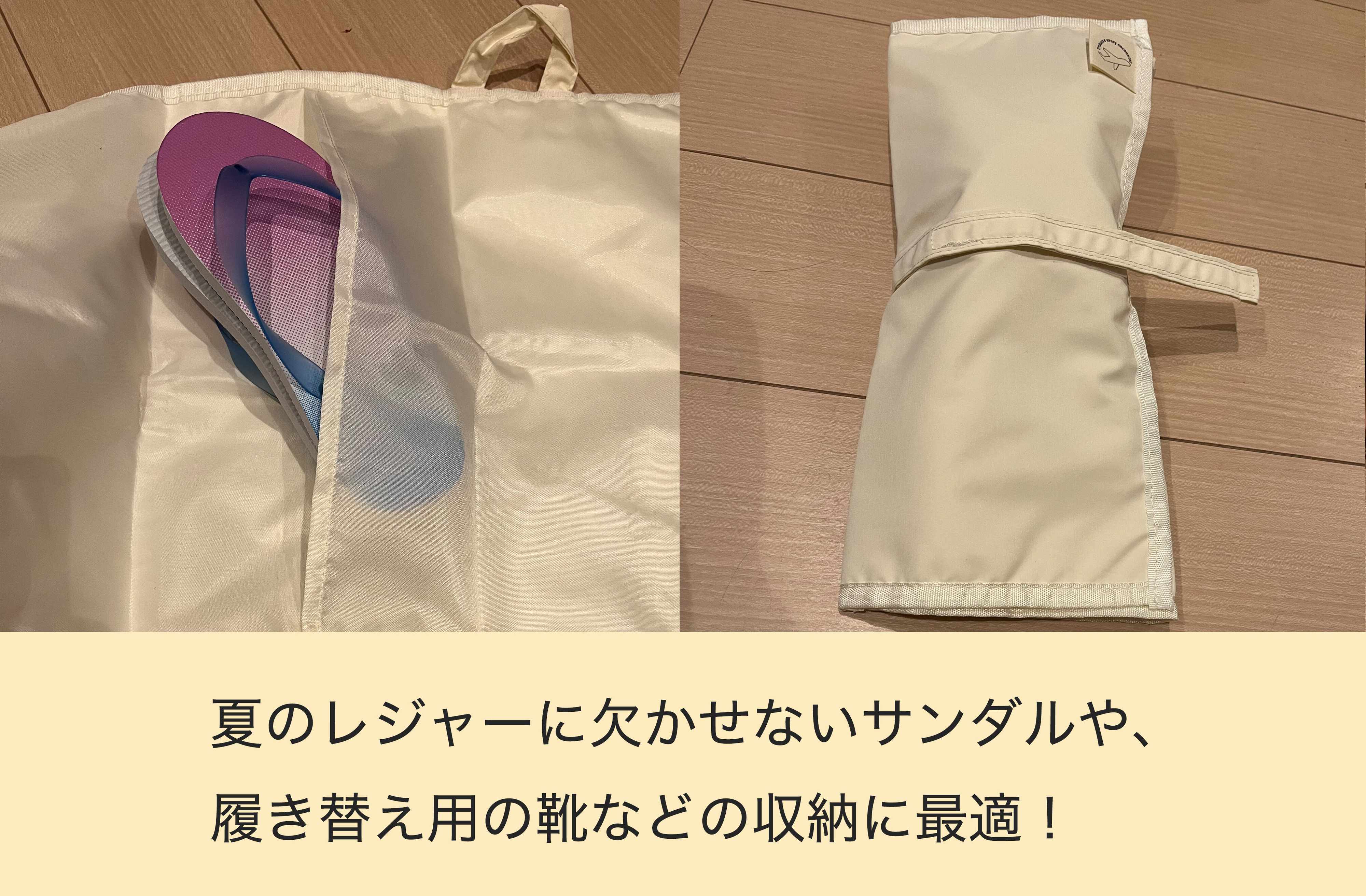 薄いビーチサンダルなどは、家族4人分収納できるサイズ感なので、まとめて持ち運びができて本当に便利です!