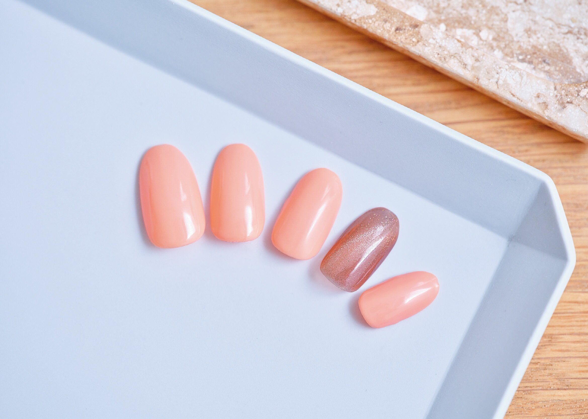 コーラルピンク、モスグリーンなど、少し“黄み”がある色は、肌の色になじみ、指先がきれいに見えます。ビビッドすぎる色は悪目立ちするので△。