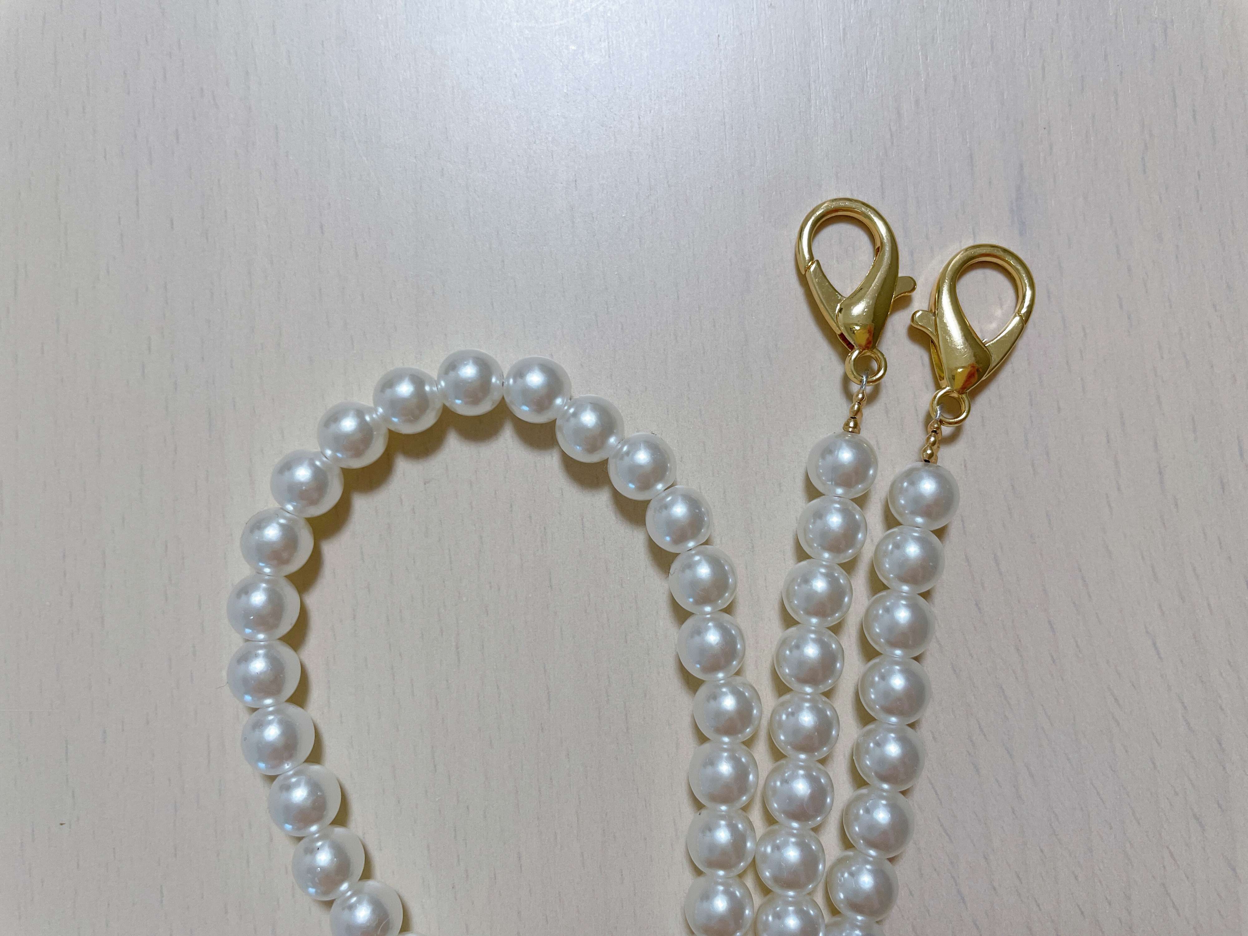 パールをつないでいるのは糸ではなく、ワイヤーのようなしっかりした物に通してあるので丈夫そうです!