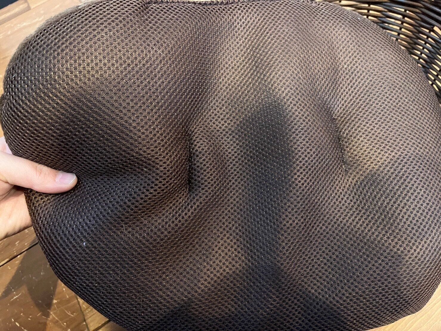 クッションの表面はもこもこしたあたたかい素材ですが、裏面はメッシュになっています。