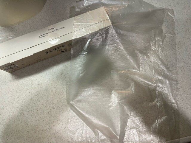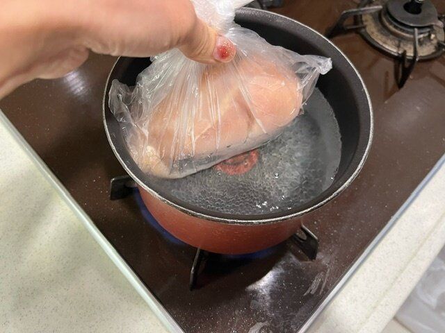 一晩経ったら鶏胸肉を湯煎にかけるのですが、この調理袋はこのまま湯煎にかけられると言うことなので