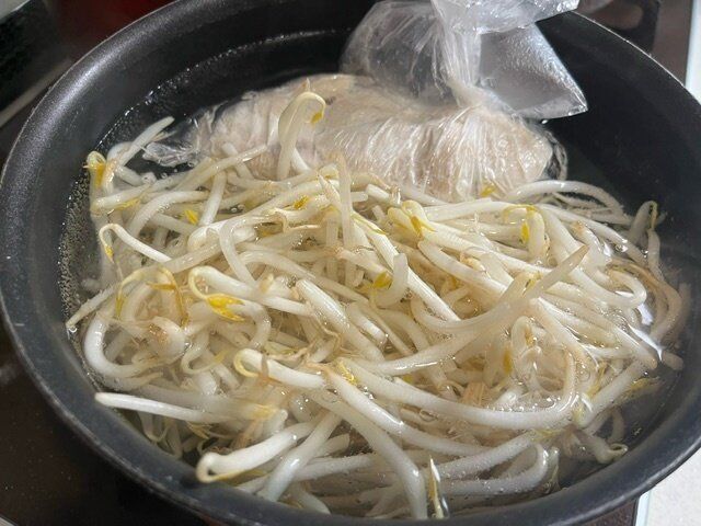 袋から出さずにこのまま湯煎にかけてみることにしました。