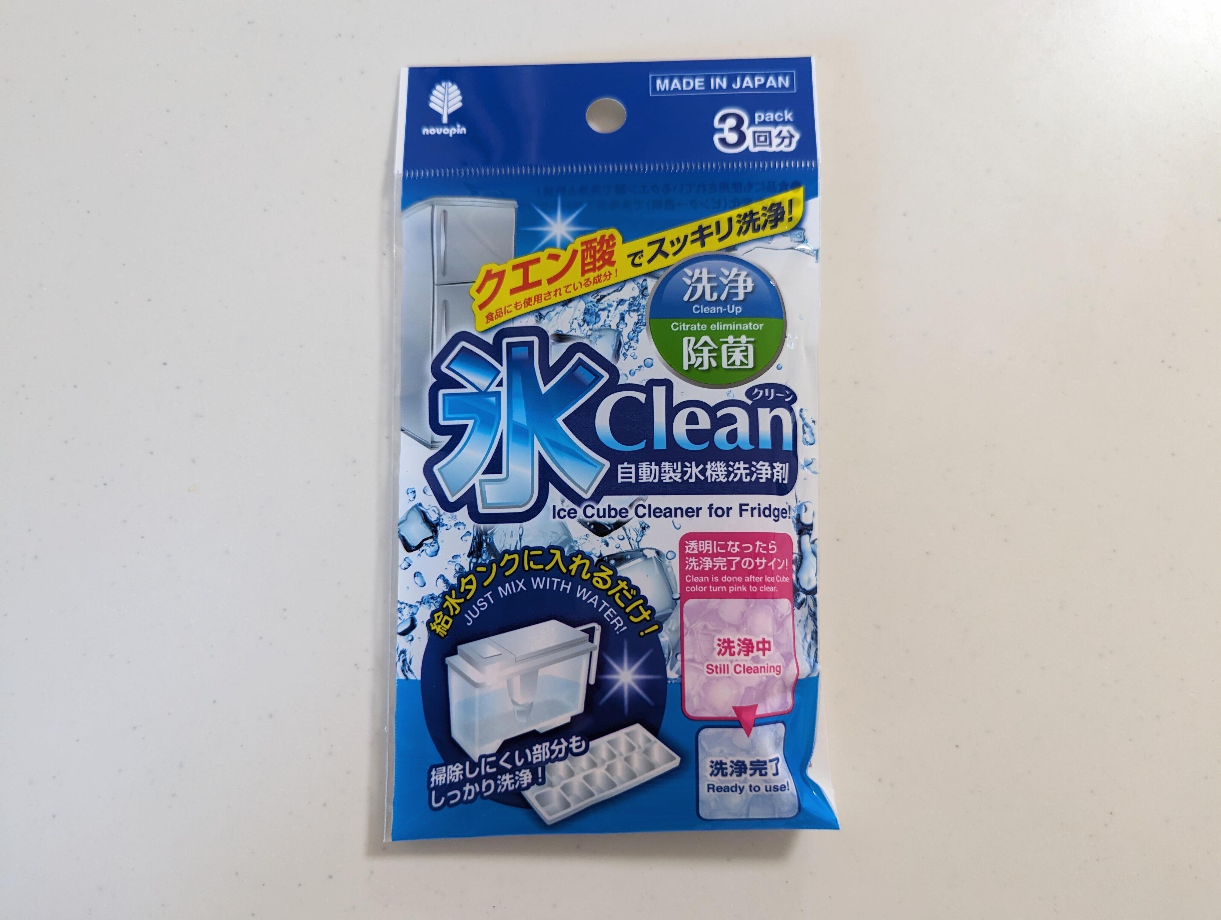使うのは、クエン酸と食品添加物色素でできた、ダイソーの『自動製氷機洗浄剤 氷Clean』(110円/3回分)。