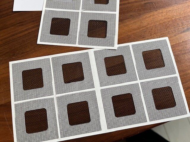 こちら。【ダイソー】「網戸補修シール」ブラック12枚入り。