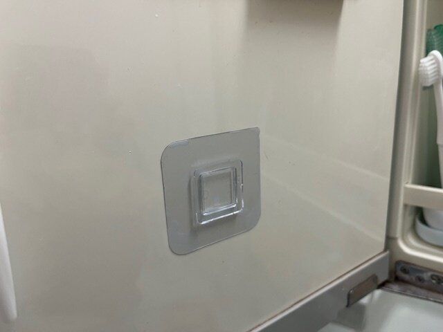 我が家は洗面所の鏡の裏面の収納のところに設置しましたが、結構厚さがあるので
