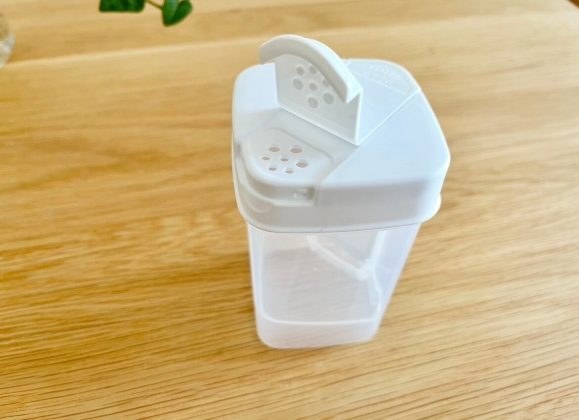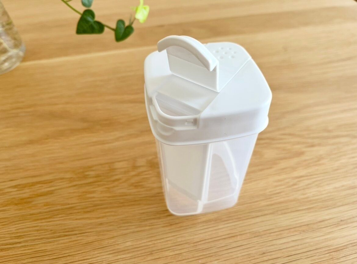 そしてもう1つの方で、ボトルをひと振りするだけで、手軽に5g分の粉末洗剤を計量することができます。用途に合わせて振り掛け口を使い分けられるのは、とっても便利ですよね!