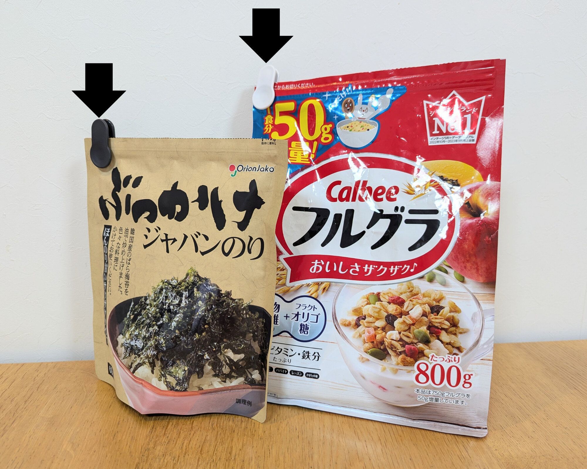 それらをまるっと解決してくれたのがこのクリップ。ロック部分をスライドさせるだけで簡単に開閉できて、いそがしいときでもノーストレス。保存袋より密封力が高く、中身の乾燥を防げる感じがします。しっかり立てて収納できるようになったので、他の食材に埋もれて使い忘れることもなくなりました。