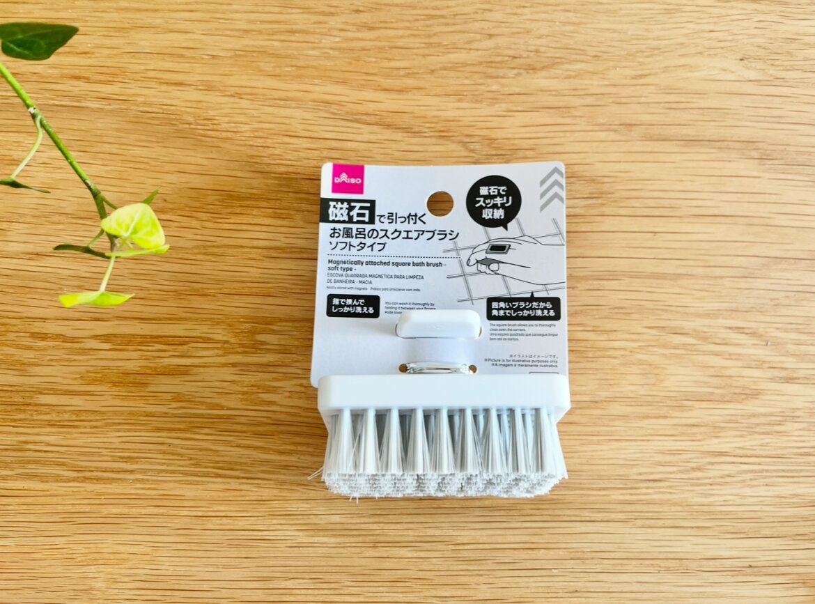 次にご紹介するのは、「磁石で引っ付くお風呂のスクエアブラシ(ソフト)」という商品。こちらのブラシは、浴室の床や壁、浴室の小物のお掃除に最適なブラシで、価格は110円で販売されています。