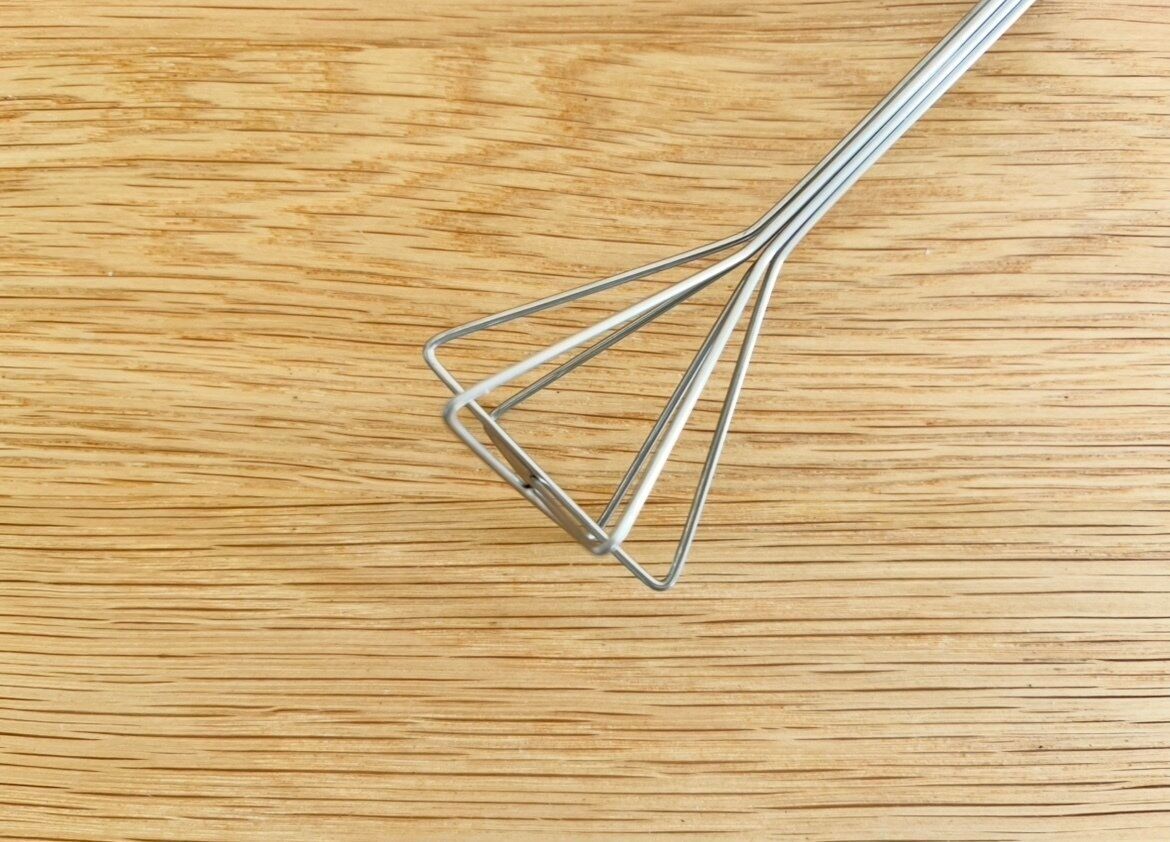 ご紹介するのは、セリアの「三角味噌マドラー(モノトーン)」という商品。一般的な味噌マドラーは、味噌をすくう部分が丸いデザインのものが多い中、こちらの商品は珍しい三角のデザインをしています。価格は、110円で販売されています。